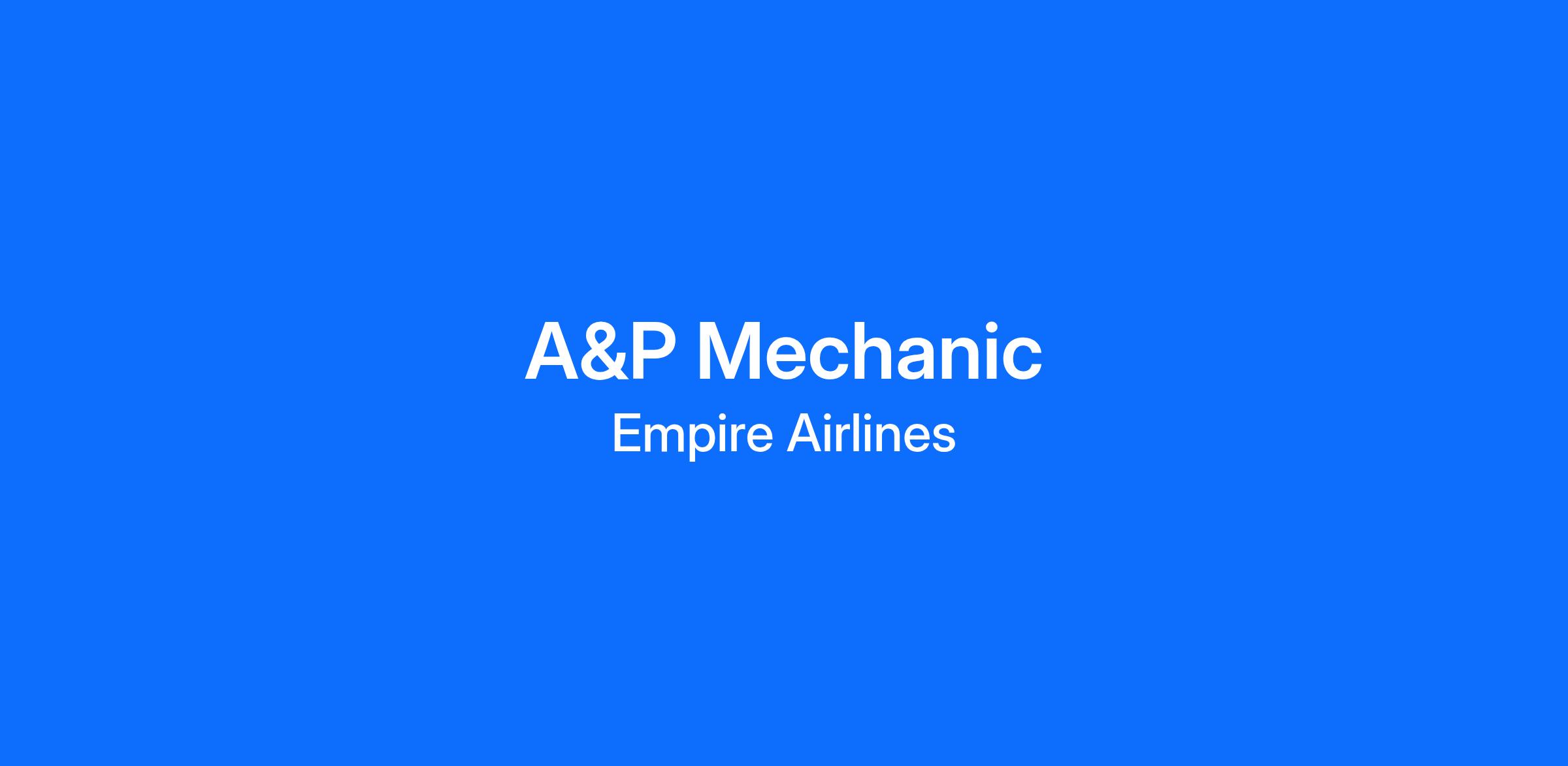 Work will be performed in a hangar environment and may require considerable outside work with up to 25% travel. Will be exposed to noise and hazards associated with aircraft maintenance. Requires standing, walking, sitting, bending and stooping for extended periods of time. May be required to lift up to 80 pounds, plus ladder/lift usage. Requires manual dexterity, speaking, seeing and hearing to conduct business. Empire Airlines is a drug, alcohol and smoke-free workplace.