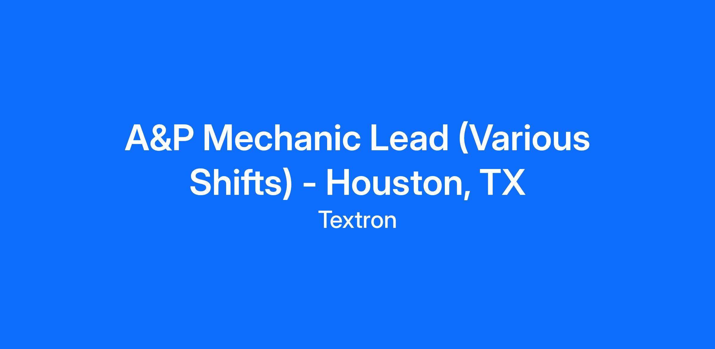 We are hiring immediately for a full-time Lead A&P (Airframe & Powerplant) mechanic. This role is critical to our mission, so we are offering up to a $15,000 Sign-on Bonus.