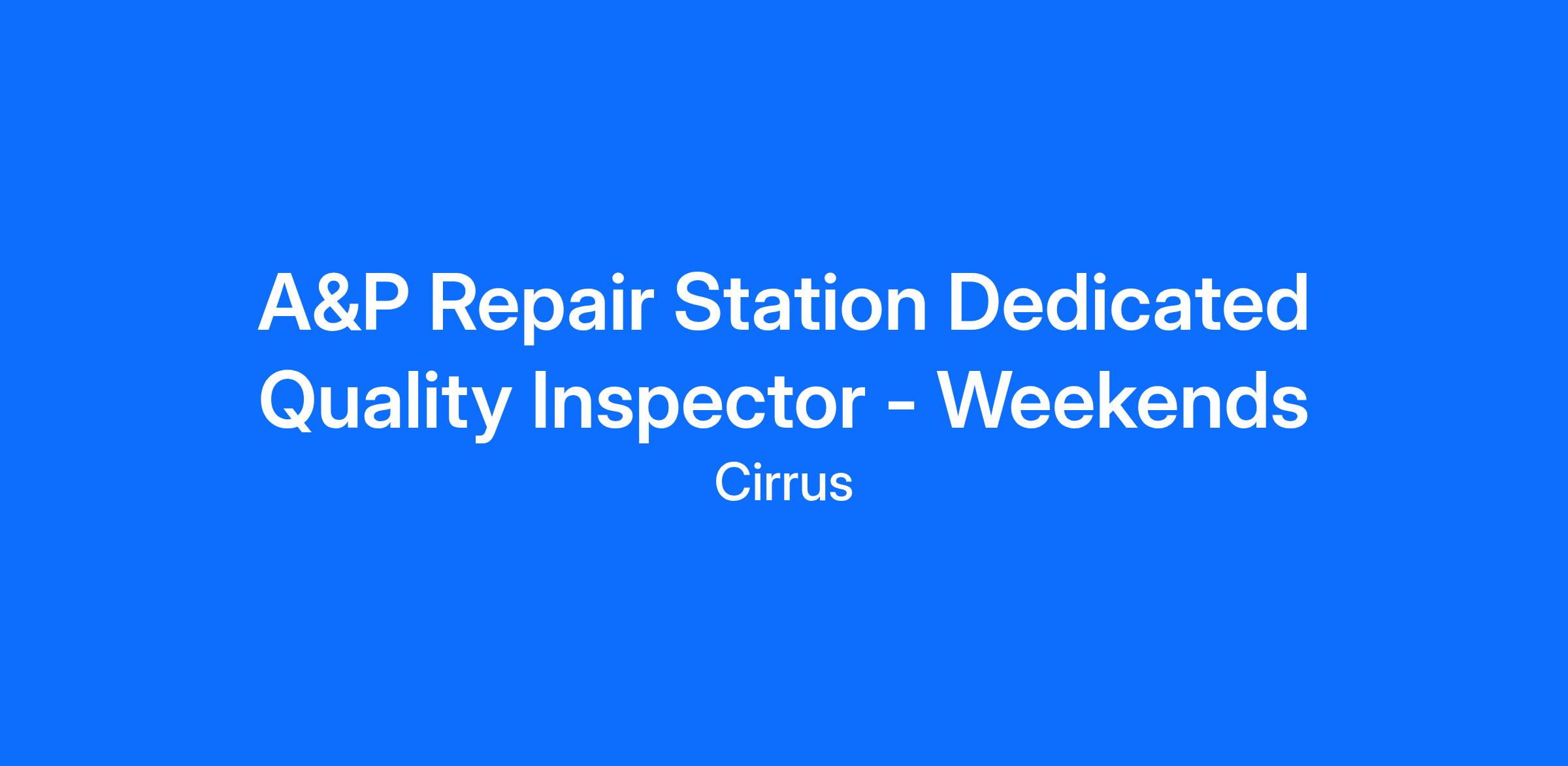 We are seeking an enthusiastic, energetic, and customer-focused Repair Station Quality Inspector to support training, development, and standards functions at Cirrus Aircraft. This individual plays a critical role in ensuring operational excellence through quality control of in-process, incoming, and outgoing inspections, mechanic training, work order recordkeeping, and return-to-service processes.