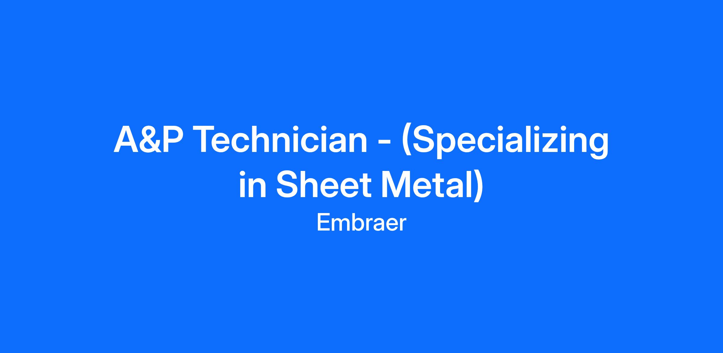 **This role requires an A&P license and will have a heavy focus on sheet metal work**