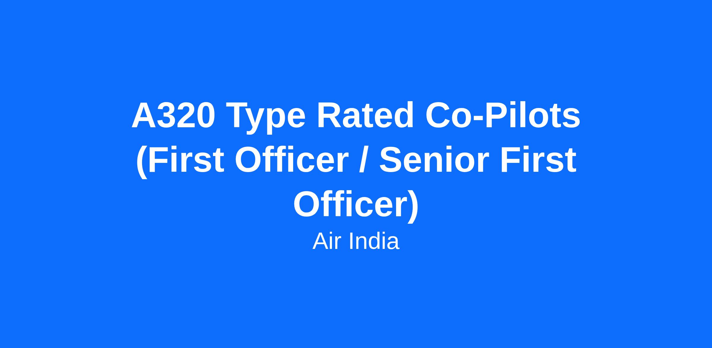 AIR INDIA GROUP is Inviting Applications from Experienced A320 Type Rated Co-Pilots (First Officer (CPL) / Senior First Offer (ATPL))
