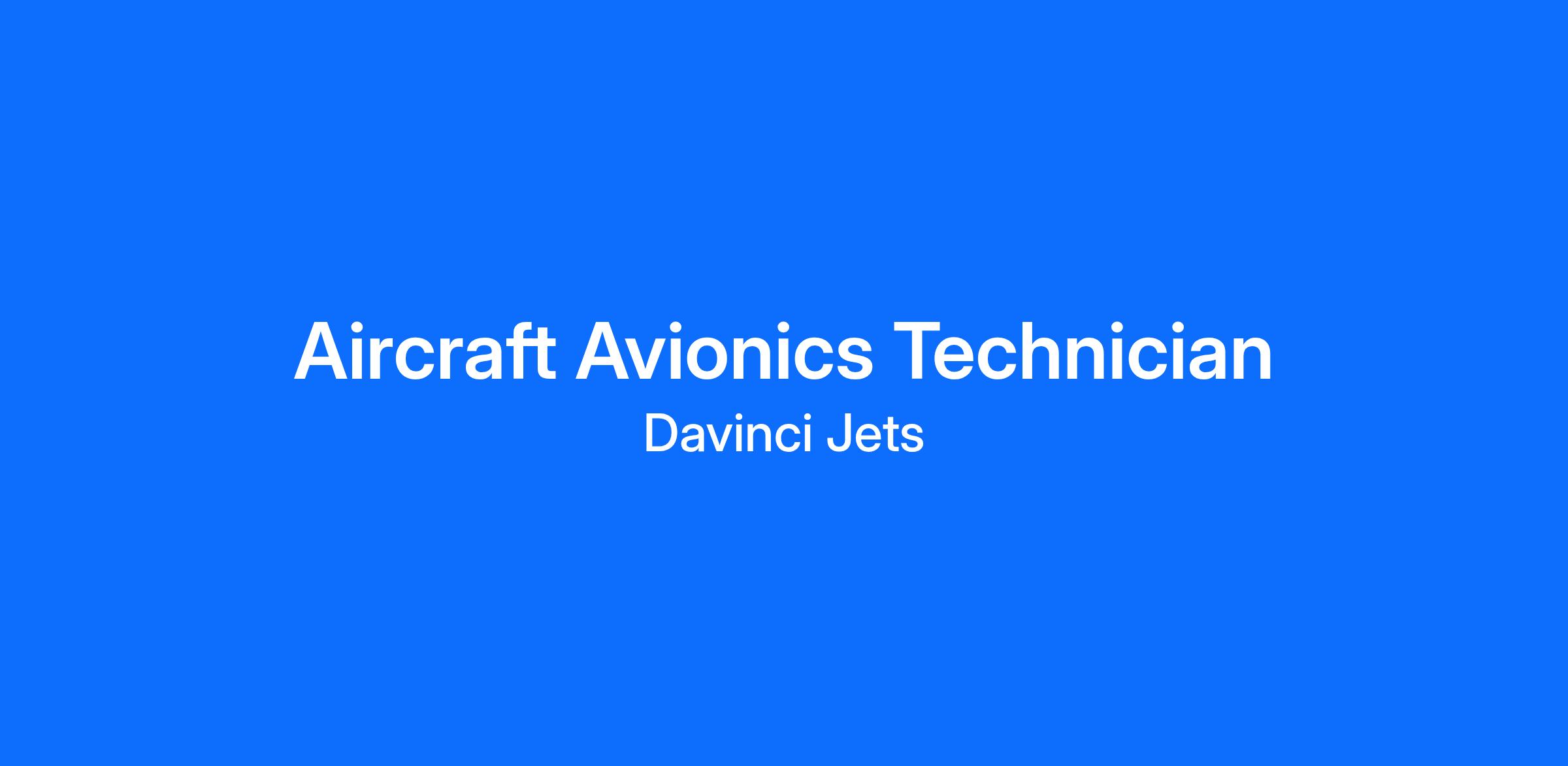 Davinci Jets Services is seeking to hire an experienced Aircraft Avionics Technician to perform unscheduled maintenance and repairs on corporate aircraft and return it to service in a timely manner. This position would be based in Charlotte, NC. An ideal candidate is capable of being self-sufficient and has a strong understanding of how to manage work scopes from inception to completion.