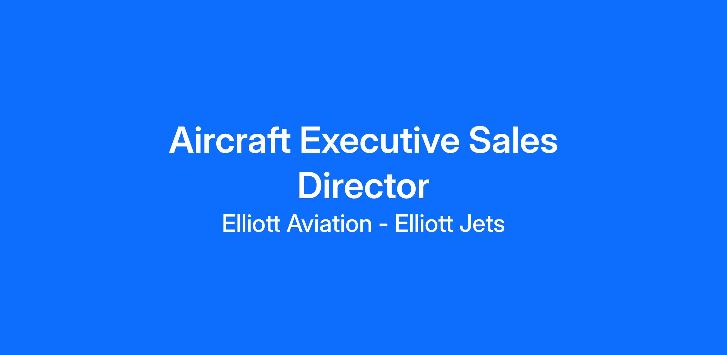WHY JOIN ELLIOTT: At Elliott Jets and Elliott Aviation, you're not just joining a company, you are becoming part of a legacy built on integrity, customer commitment and 90 years of excellence. We believe in empowering our sales team with the tools, support, and freedom they need to perform at their best.