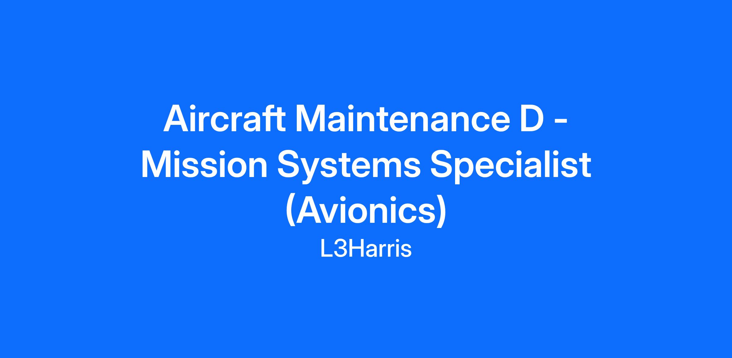 Job Title: Aircraft Maintenance D / Mission Systems Specialist (Avionics)