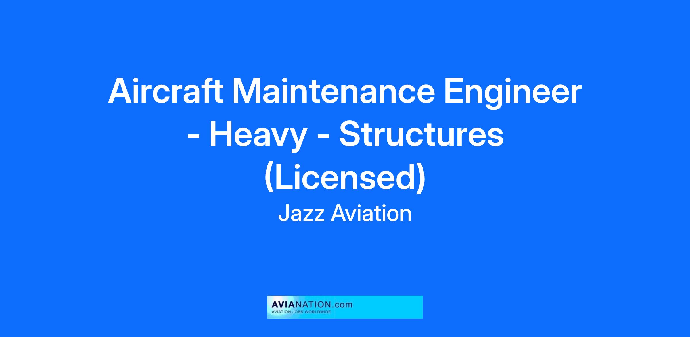 Jazz is looking for Licensed Aircraft Maintenance Engineers (Structures) with a passion for safety and customer service to join our award-winning team!