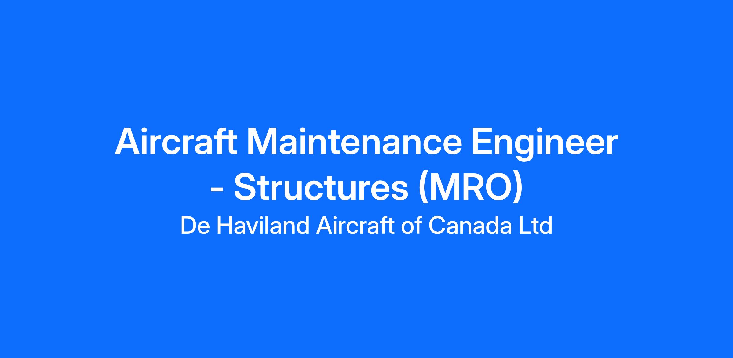 Experience with all De Havilland Aircraft of Canada products consider an asset