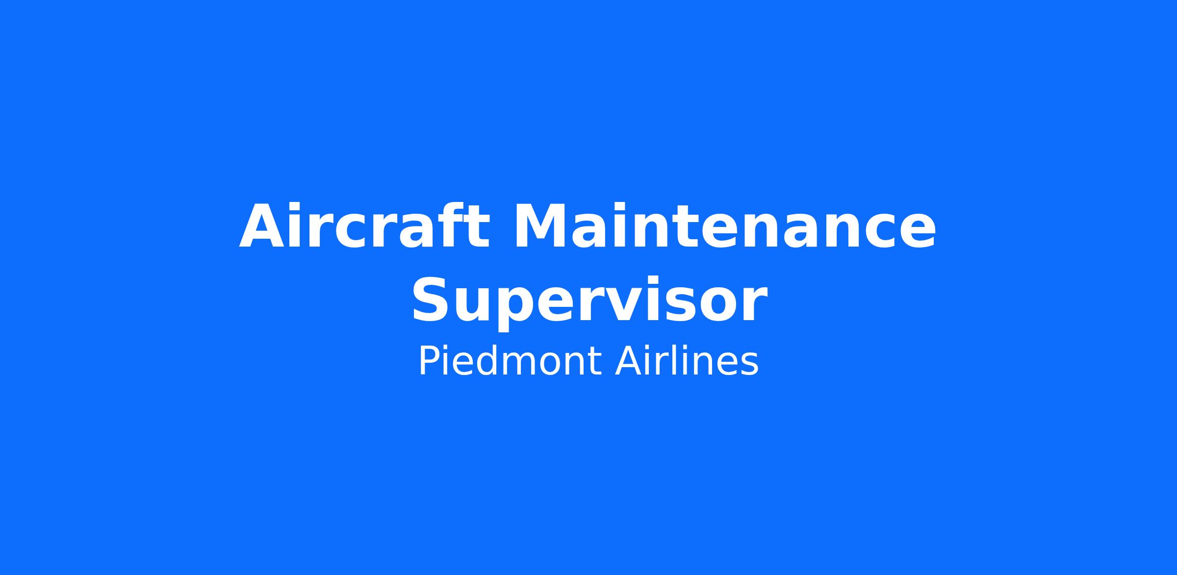 At Piedmont Airlines, our strength is the way we deliver industry-leading service to our customers and airline partners. To continue our standard of excellence, Piedmont is seeking a motivated, reliable professional to join our team as an Aircraft Maintenance Supervisor in our Maintenance Department. The primary responsibility of the position is maintaining and scheduling manpower, workloads, parts, tools, and supplies for the day-to-day operation. The Aircraft Maintenance Supervisor supervises maintenance staff in repair, inspection, alteration, and modification of the aircraft. The successful candidate will hold a Federal Aviation Administration (FAA) Airframe and Powerplant License and have one year of experience as an Airframe and Powerplant Mechanic. This position will report to the Manager, Aircraft Heavy Maintenance.
