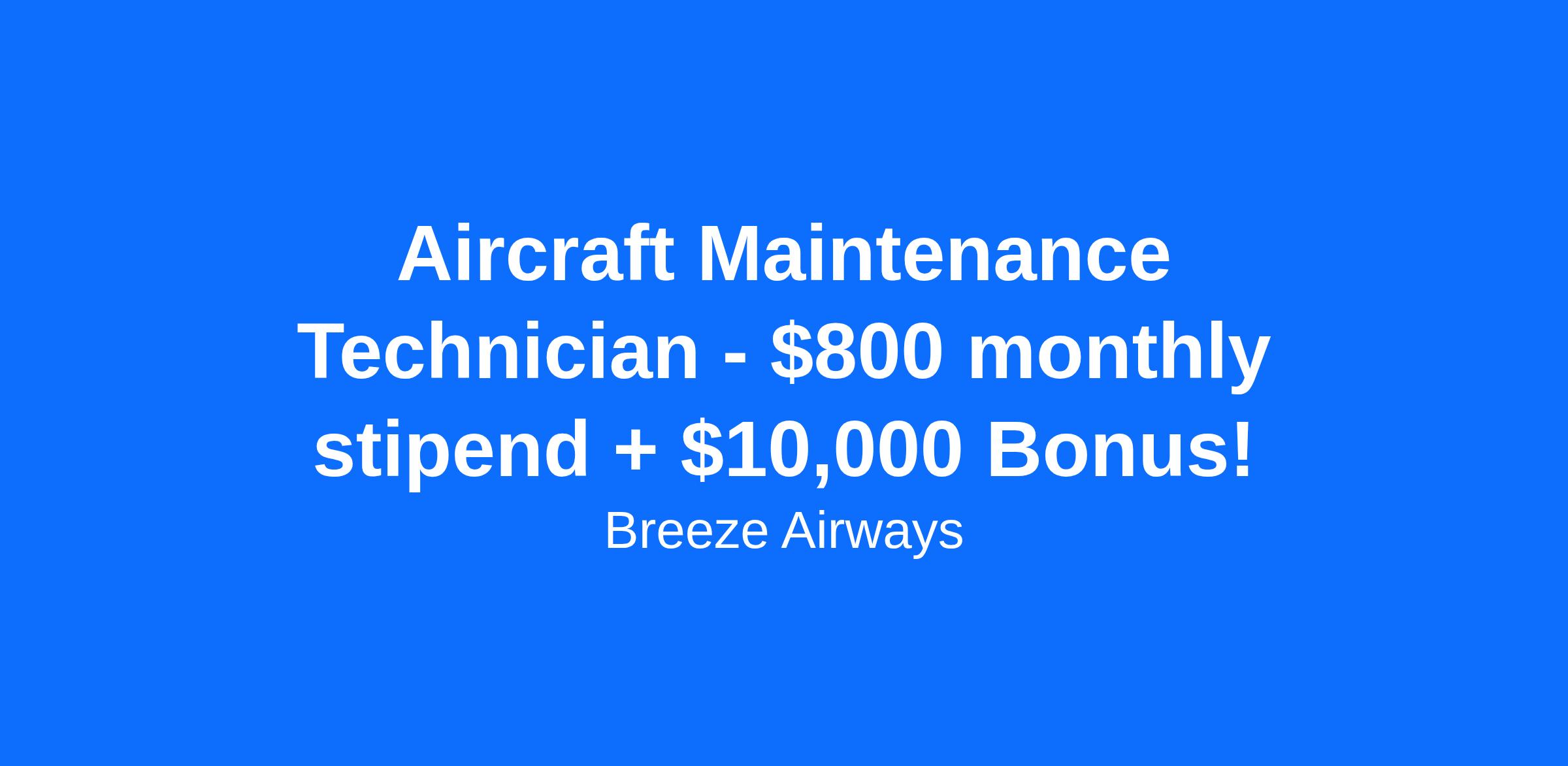 Breeze Airways is the newest, nicest, fastest growing airline with maintenance bases in Windsor Locks, CT (BDL), Charleston, SC (CHS), New Orleans, LA (MSY), Norfolk, VA (ORF), Provo, UT (PVU), Tampa, FL(TPA), Providence, RI (PVD), Orlando, FL (MCO), Fort Myers, FL (RSW) and Raleigh-Durham, NC (RDU)!