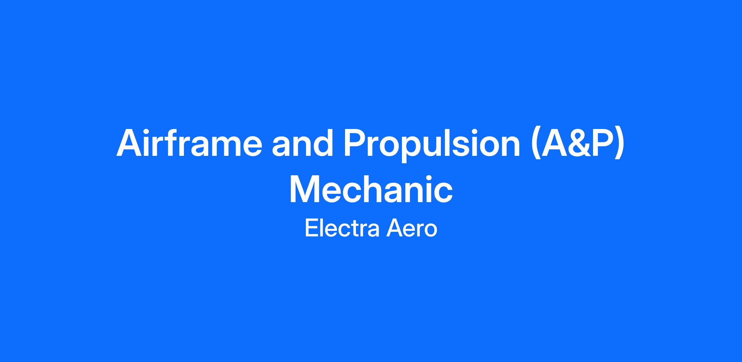Electra is seeking an experienced and FAA-licensed Airframe and Propulsion (A&P) Mechanic to join the A&P team. The role includes a wide spectrum of fabrication, assembly, test, and maintenance duties; including, but not limited to: prototype and production aircraft; the desire to influence the design of new aircraft products to assure their airworthiness, maintainability, reliability, and manufacturability; to support the aircraft design and certification teams; and to maintain aircraft for sustained airworthiness. This role reports into the Manufacturing and Supply Chain organization and is based in Manassas, VA.