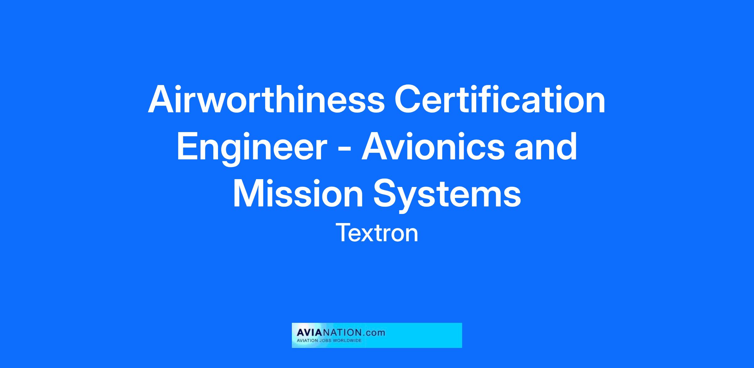 Airworthiness Certification Engineer - Avionics and Mission Systems