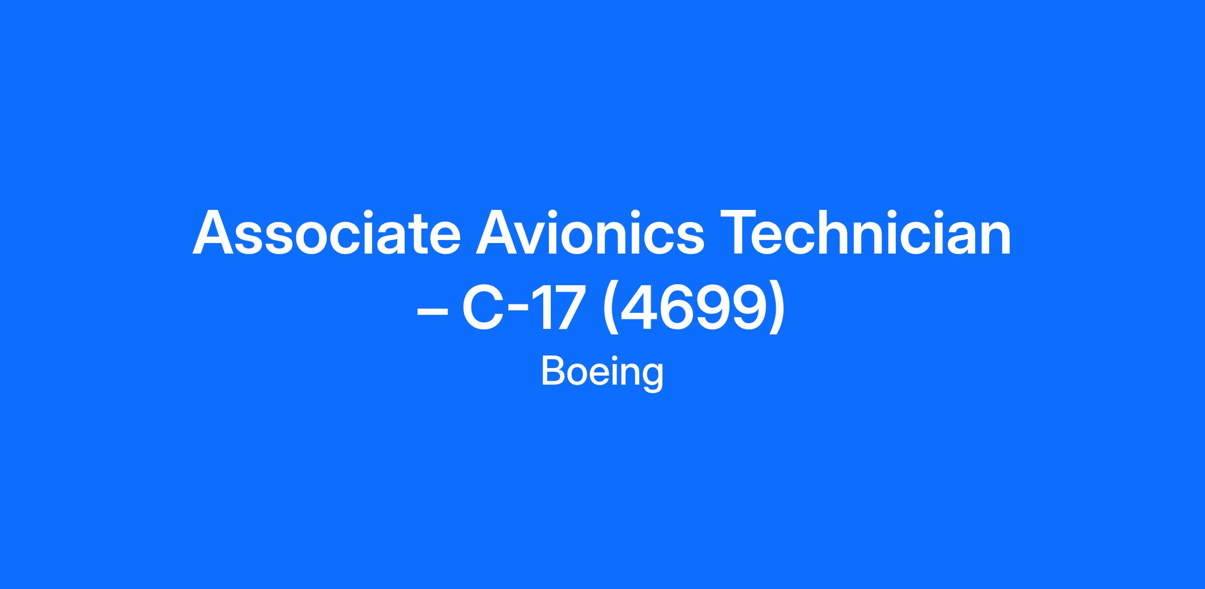 Boeing Aerospace OperationsBoeing Global Services (BGS) is looking for an Associate Avionics Technician to join our C-17 team in San Antonio, TX.