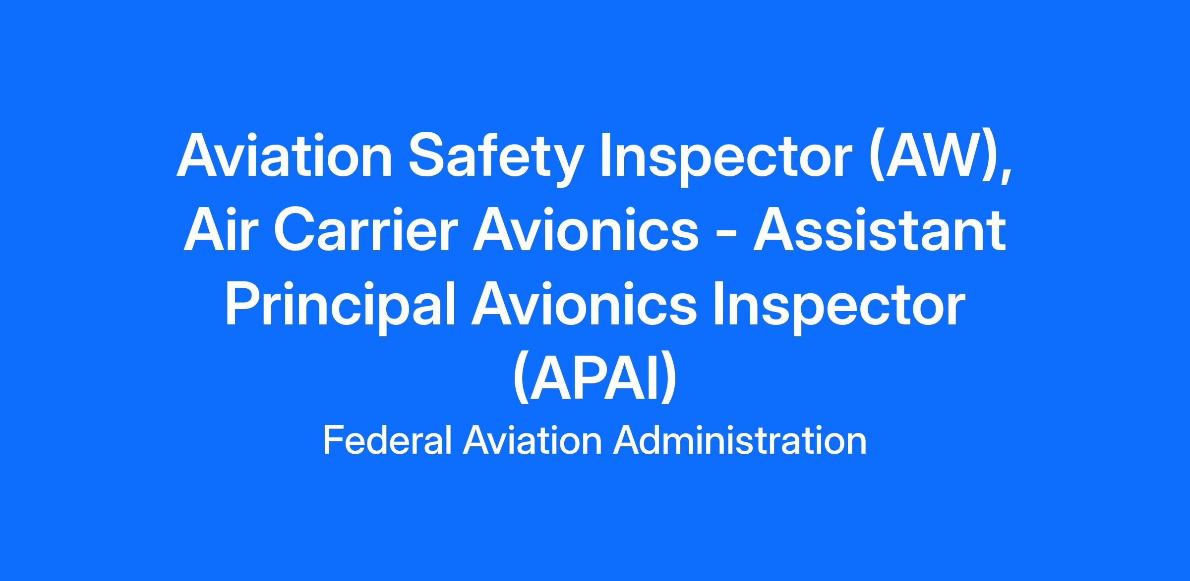 The Assistant Principal Avionics Inspector (APAI) serves as a full assistant to a Principal Inspector (Avionics) performing the full range of certification, surveillance, and inspection duties for assigned air carriers, air operators, air agencies, airmen, and designees. The inspector has program responsibility to assure that assigned organizations meet Title 14 of the Code of Federal Regulations (14 CFR) with respect to maintenance, preventive maintenance, and alteration programs.