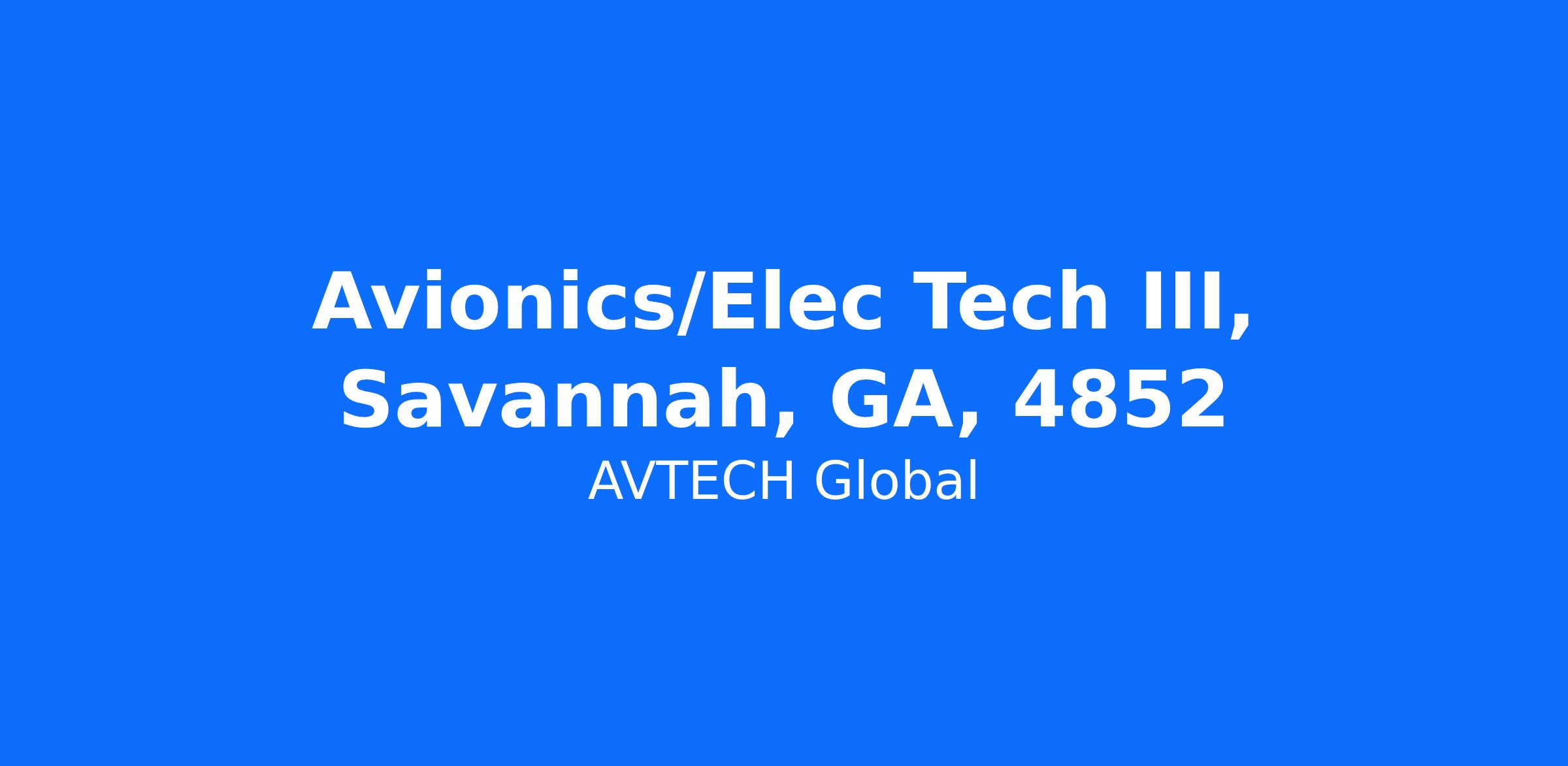 AVTECH Global is looking for an Avionics/Elec Tech III in Savannah, GA.