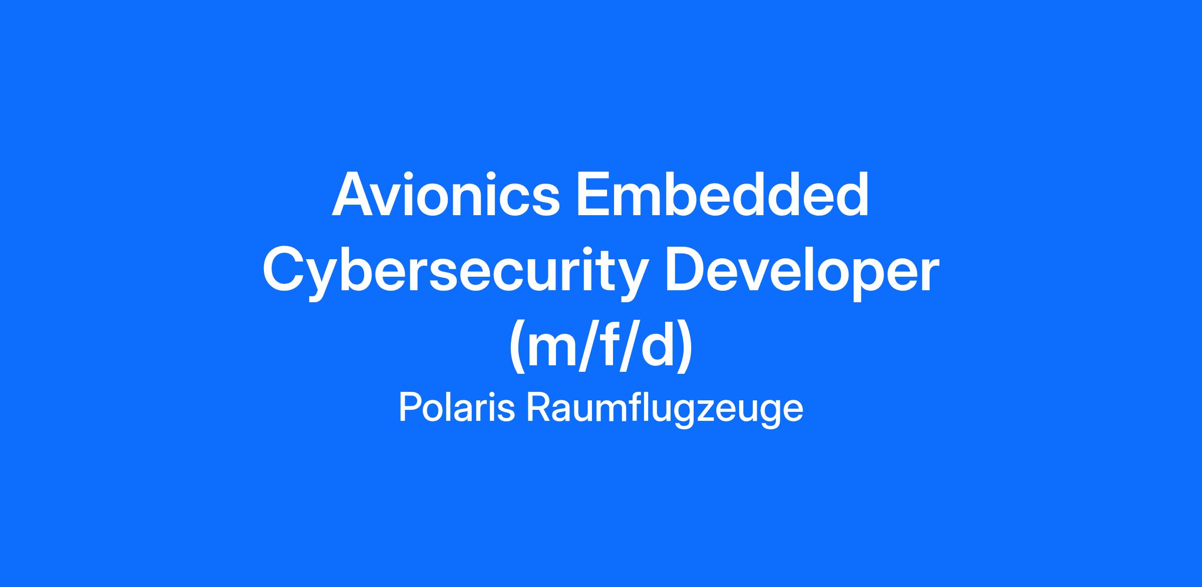 POLARIS Raumflugzeuge GmbH develops innovative transportation systems that redefine access to space for payloads and passengers. With now 70 dedicated colleagues, we are working at two locations to make our vision reality. We are continuing to expand our team and are looking to fill the position of Avionics Embedded Cybersecurity Developer (m/f/d).