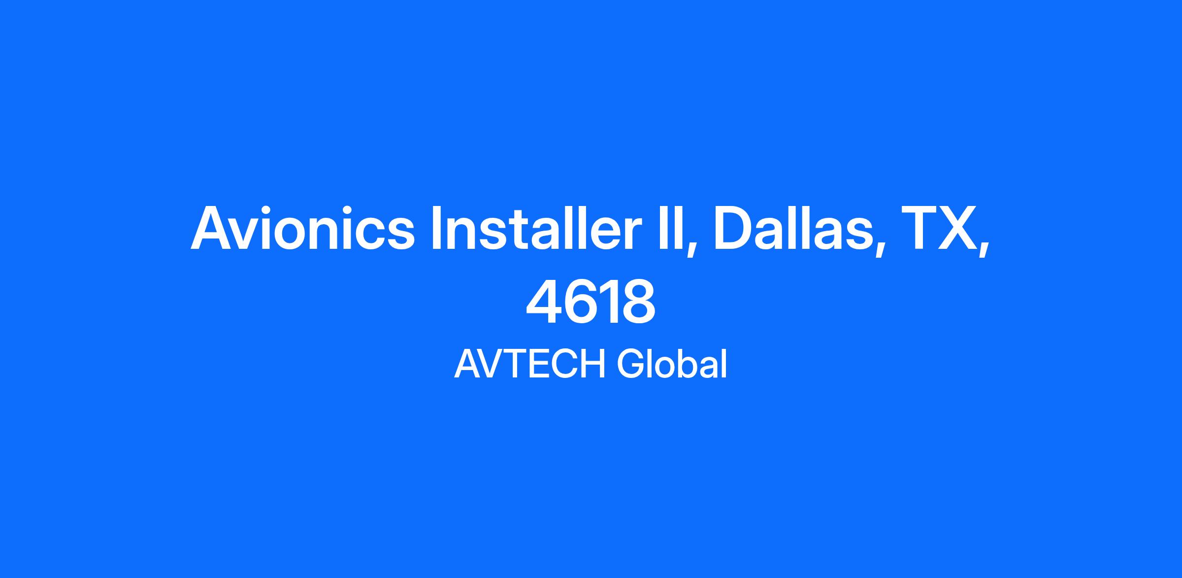 AVTECH Global is looking for an Avionics Installer II in Dallas, TX.
