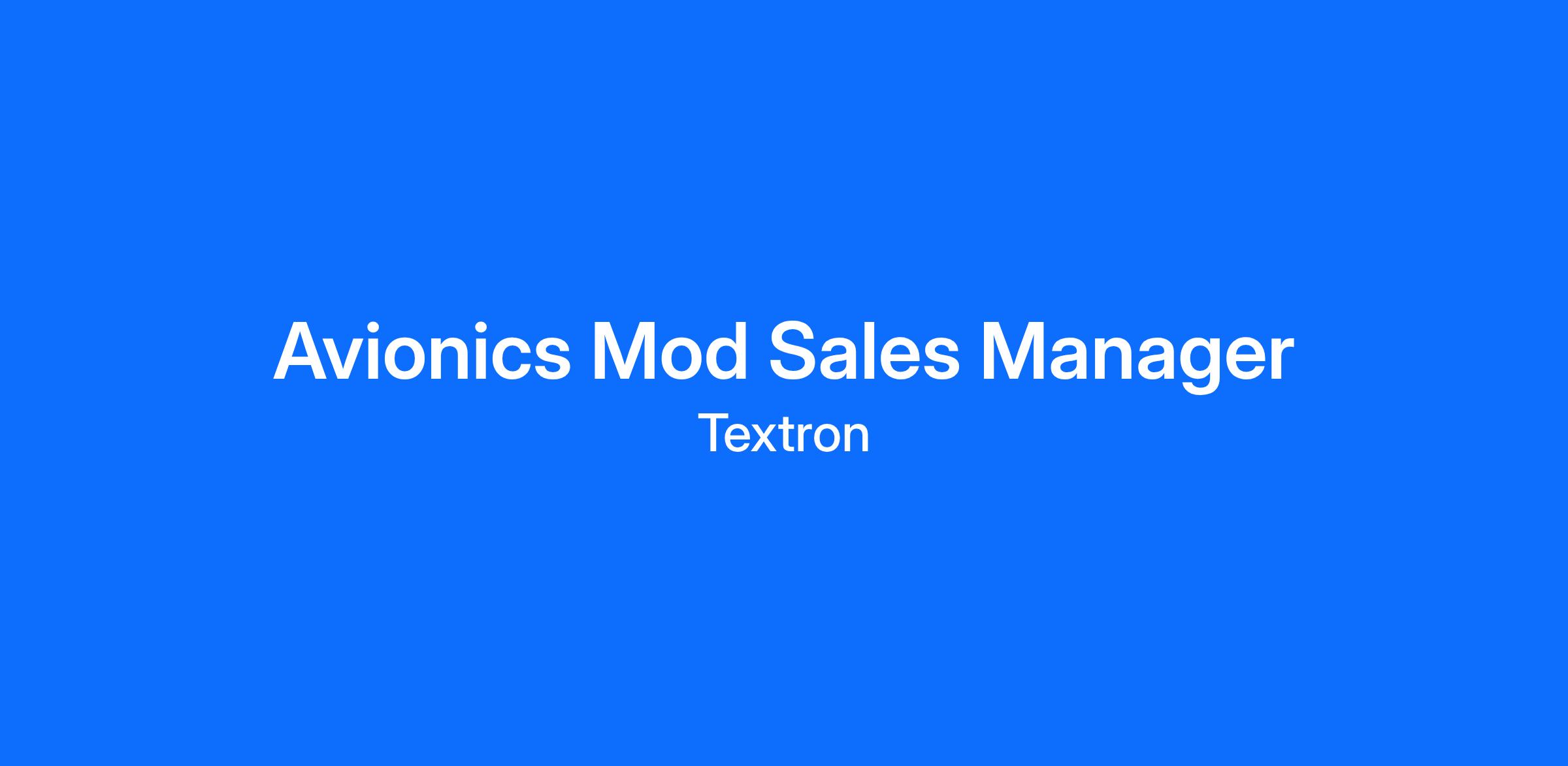 The Avionics/Mods Sales Manager will be responsible for driving profitability in the US Service Network through market development and modification sales. Duties will include setting strategy with the Aftermarket Innovation team, establishing marketing plans, leading the sales process, and closing high-value deals for US service network. Manager of Mods/Avionics will be the modifications focal point for the entire Service Center network and drive revenue growth for all Textron Aviation Citation, Hawker, and Beechcraft products.