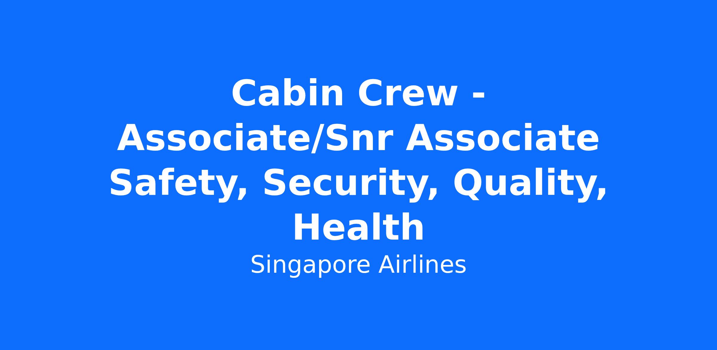 The successful candidate will join the Cabin Crew Safety, Security, Quality and Health (SSQH) Department in SIA Cabin Crew Division.