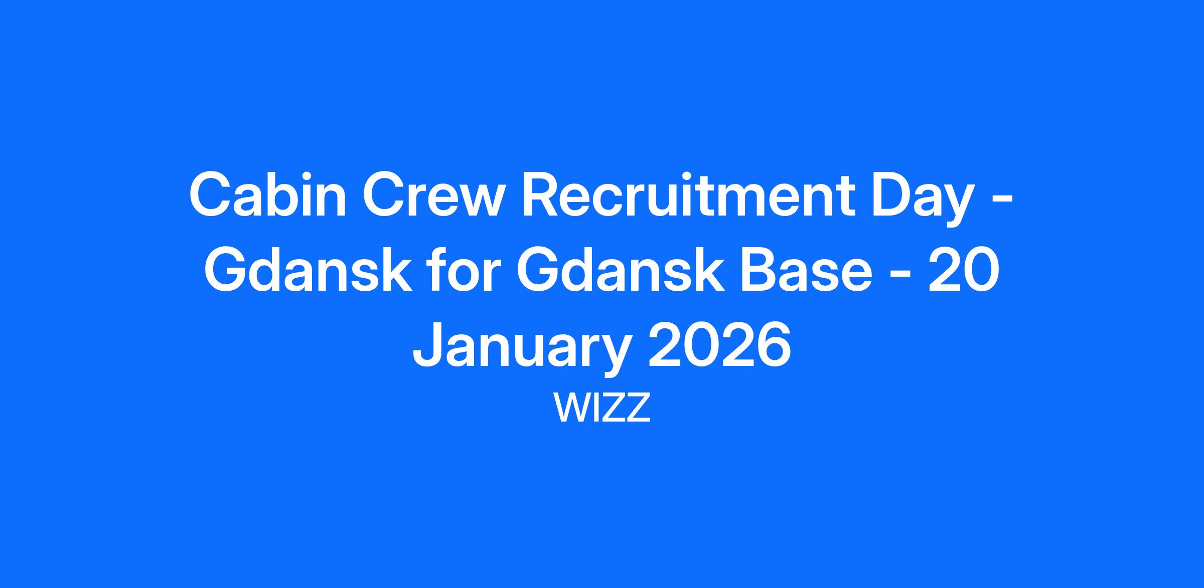 Cabin Crew Recruitment Day - Gdansk for Gdansk Base - 20 January 2026