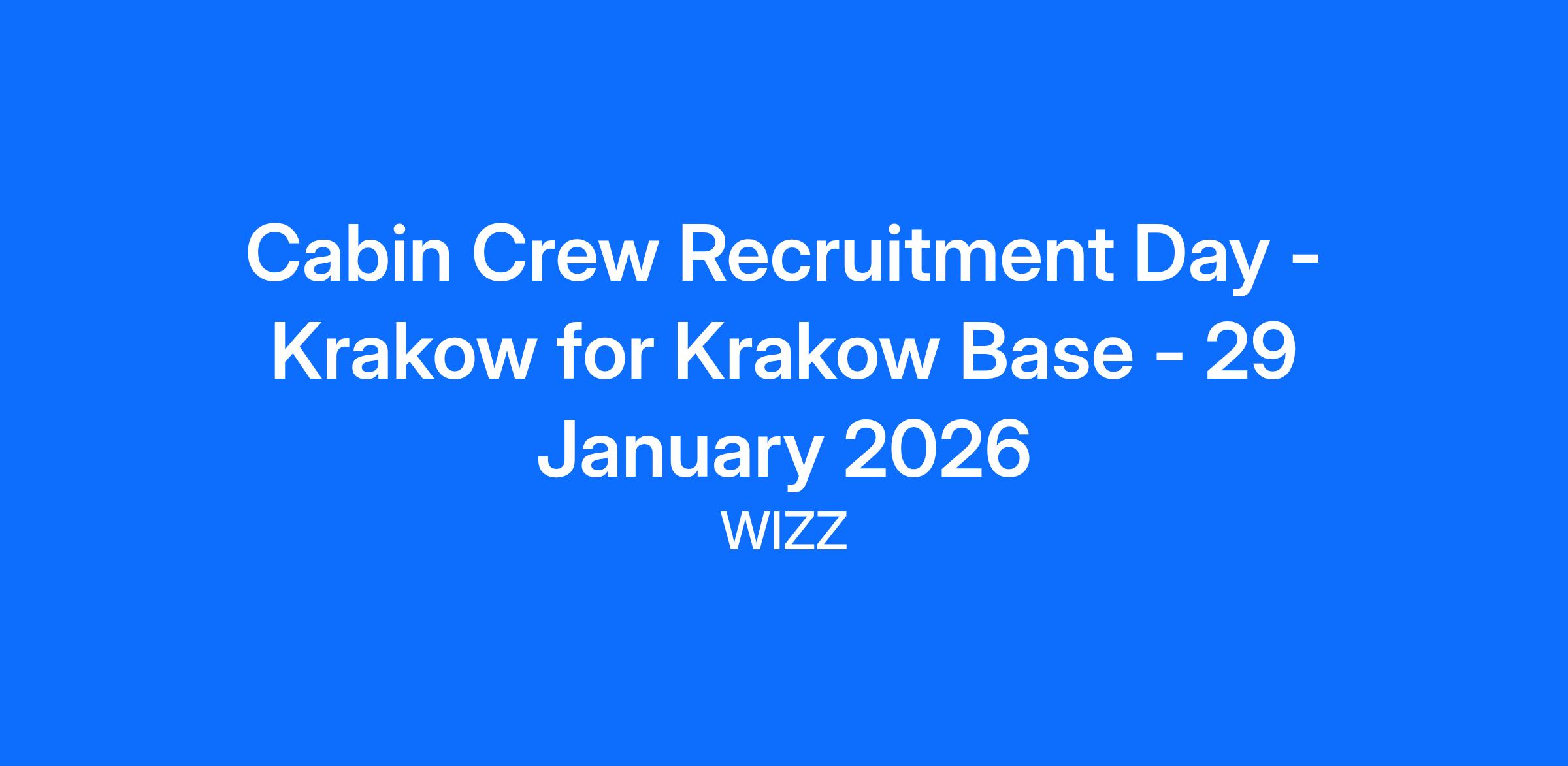 Cabin Crew Recruitment Day - Krakow for Krakow Base - 29 January 2026