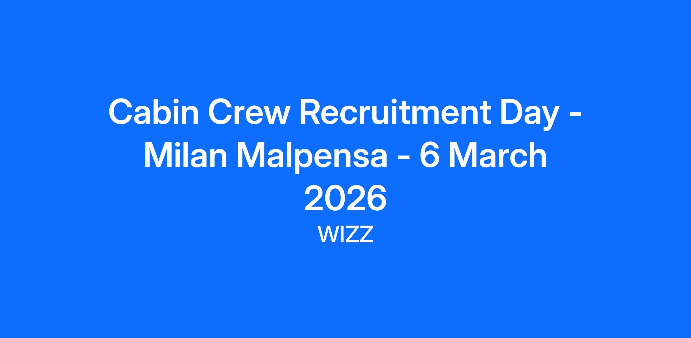 Cabin Crew Recruitment Day - Milan Malpensa - 6 March 2026