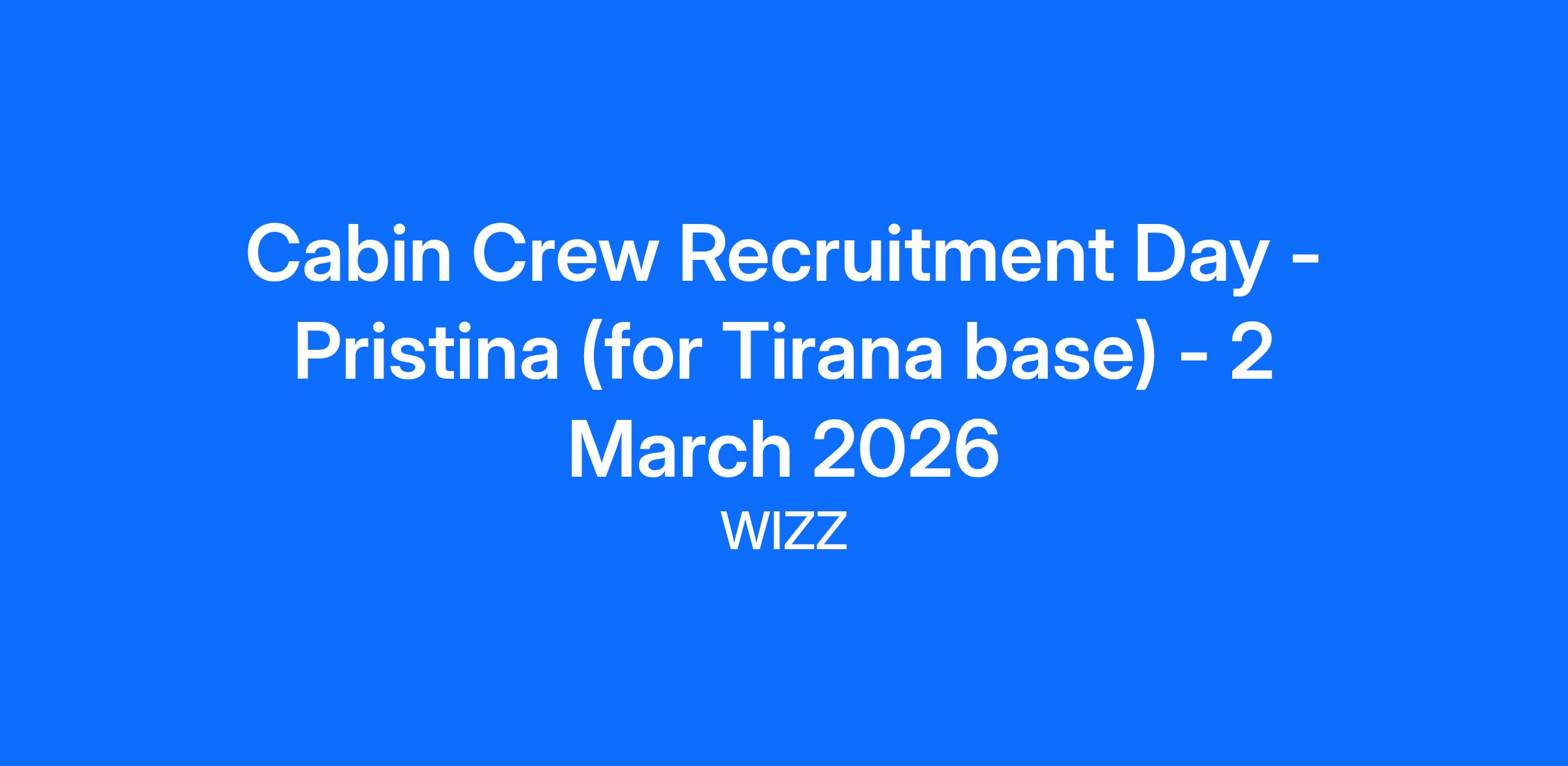 Cabin Crew Recruitment Day - Pristina (for Tirana base) - 2 March 2026