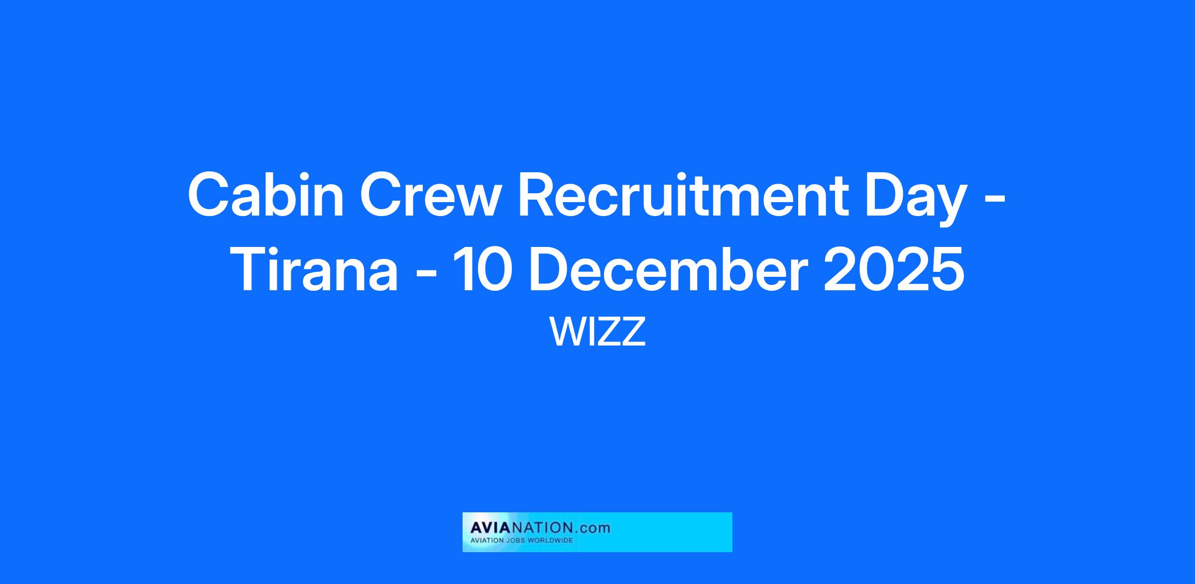 Cabin Crew Recruitment Day - Tirana - 10 December 2025
