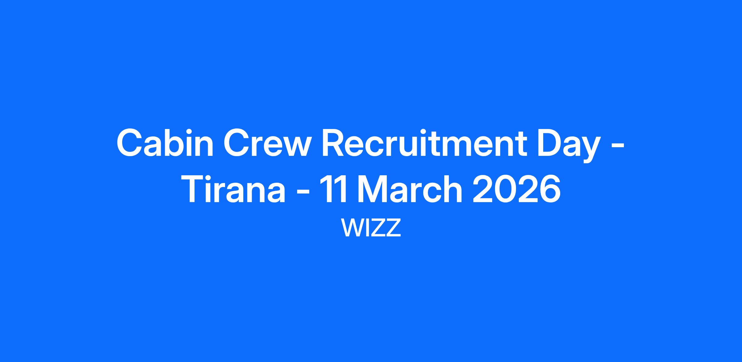 Cabin Crew Recruitment Day - Tirana - 11 March 2026