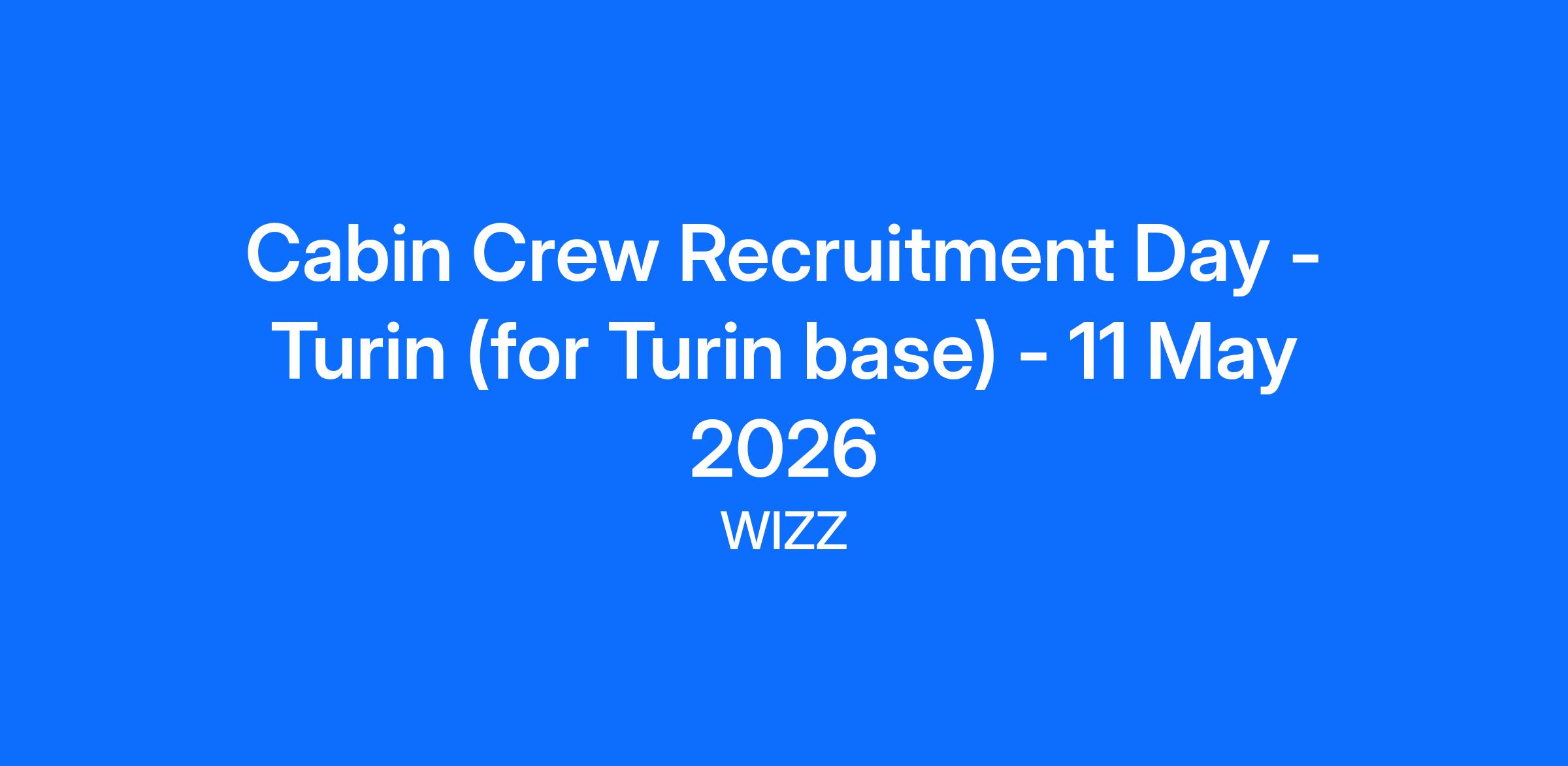 Cabin Crew Recruitment Day - Turin (for Turin base) - 11 May 2026