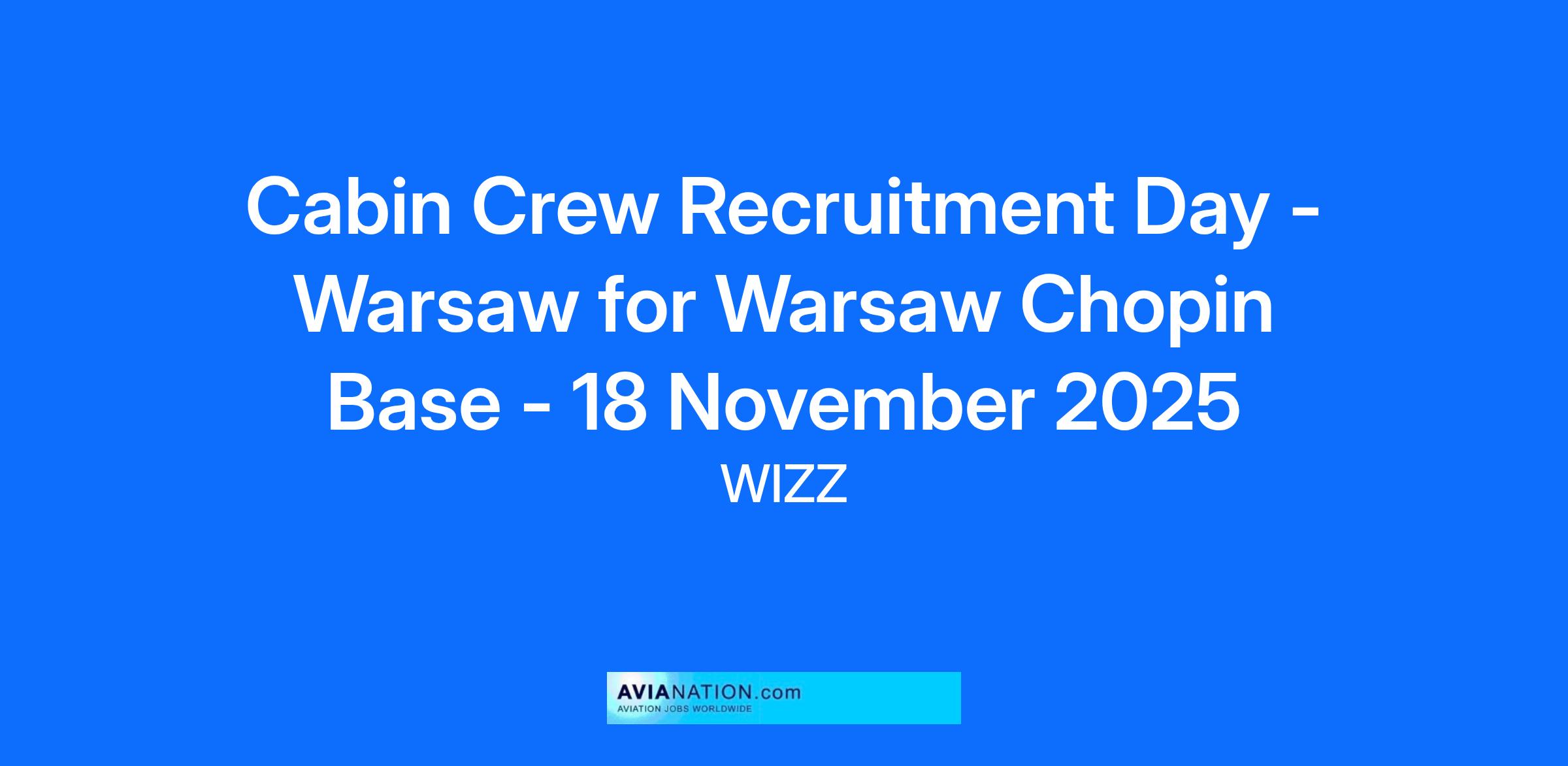 Cabin Crew Recruitment Day - Warsaw for Warsaw Chopin Base - 18 November 2025