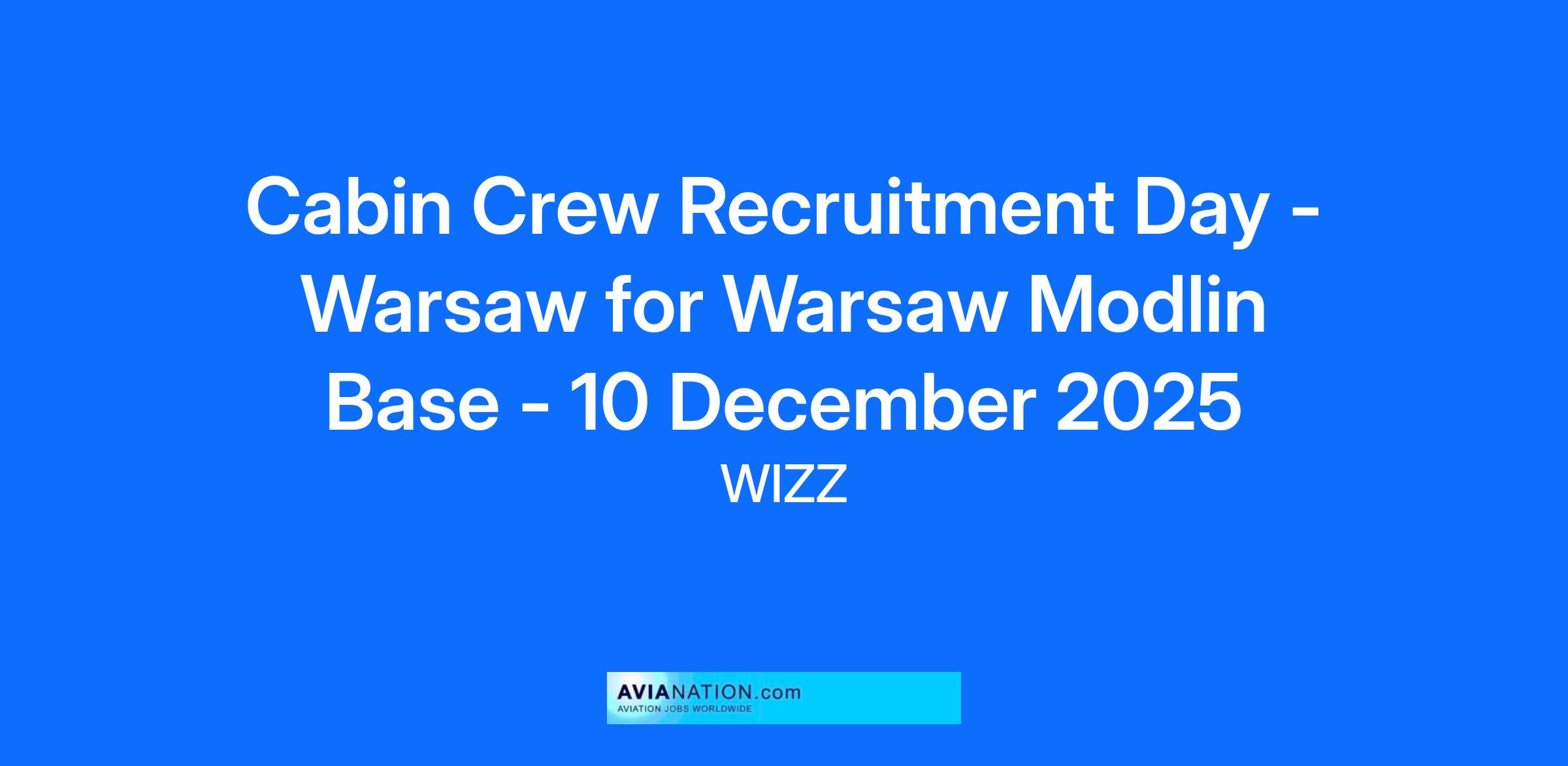 Cabin Crew Recruitment Day - Warsaw for Warsaw Modlin Base - 10 December 2025