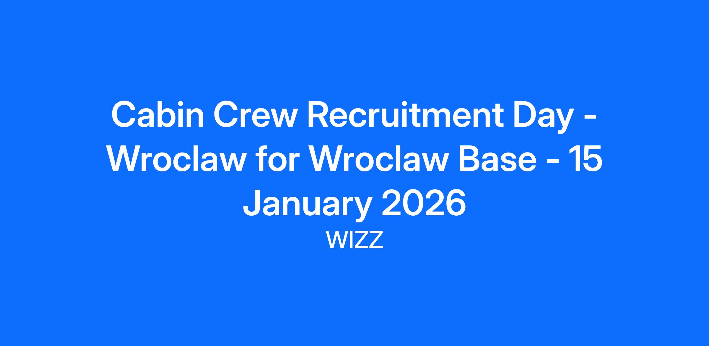 Cabin Crew Recruitment Day - Wroclaw for Wroclaw Base - 15 January 2026