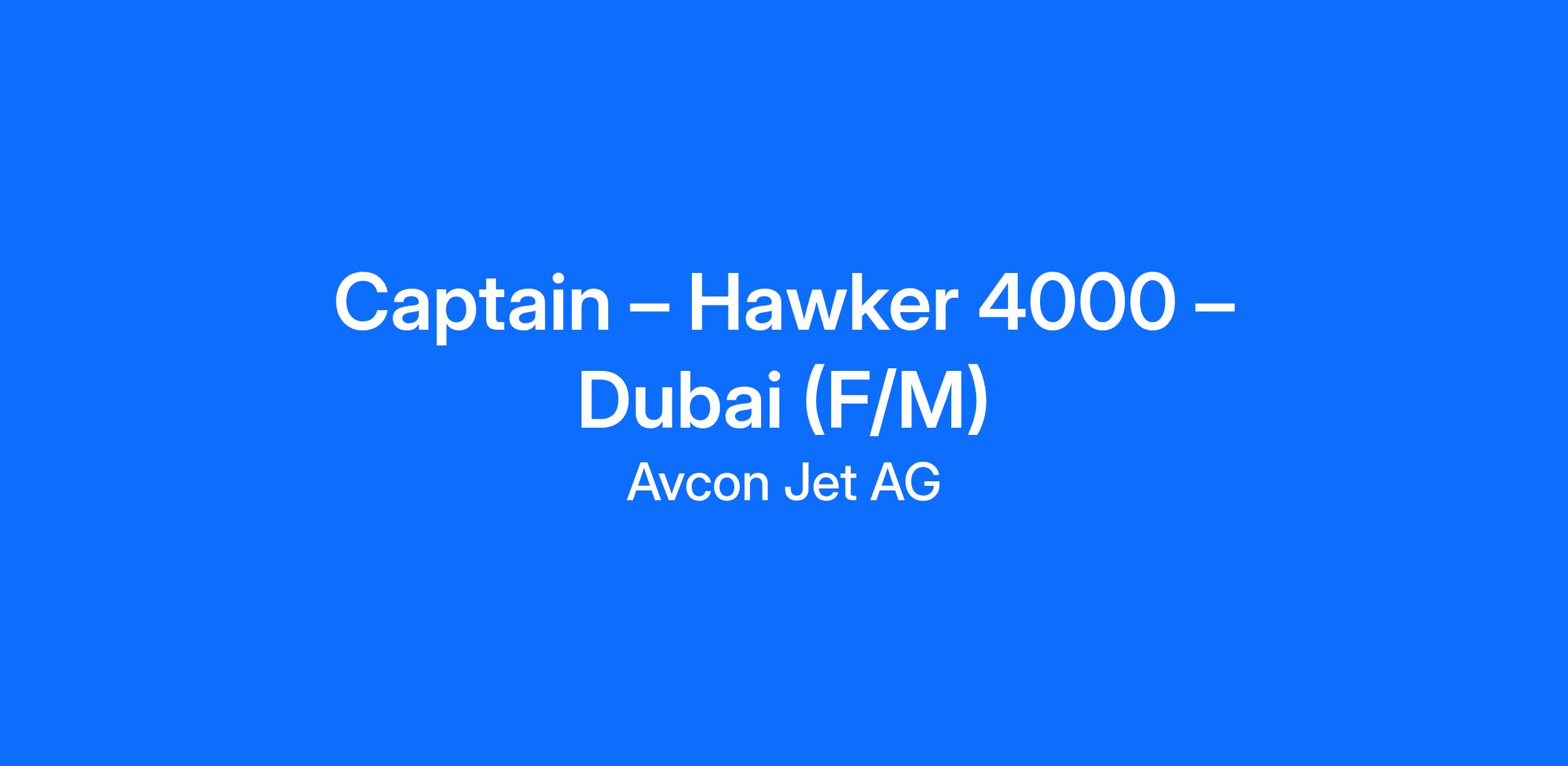 Avcon Jet Middle East is expanding—and we’re looking for a Type Rated CAPTAIN – HAWKER 4000 to join our growing team in the region!