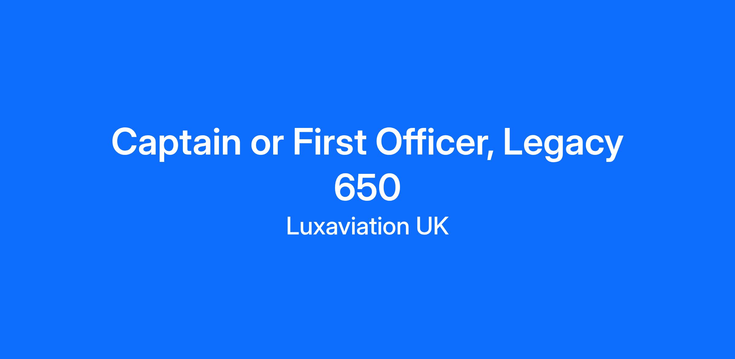 As part of our continued expansion, Luxaviation UK is looking for a full-time Legacy 650 Captain or First Officer for a Europe-based aircraft. The successful candidate will join a two-pilot team, covering operations for approximately 220 days per year.