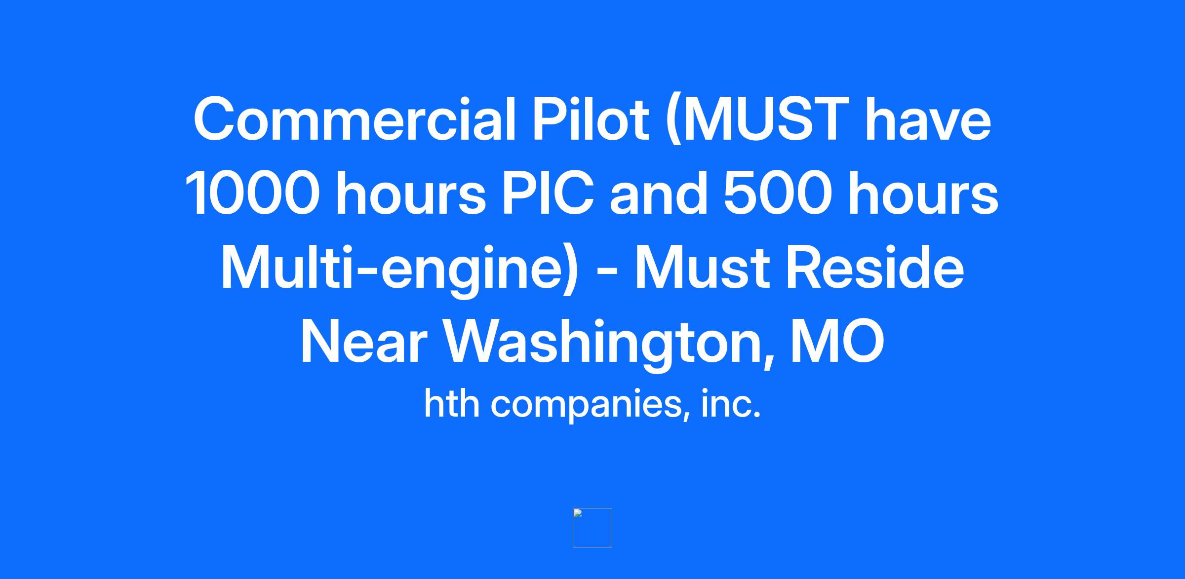 Commercial Pilot (MUST have 1000 hours PIC and 500 hours Multi-engine) - Must Reside Near Washington, MO