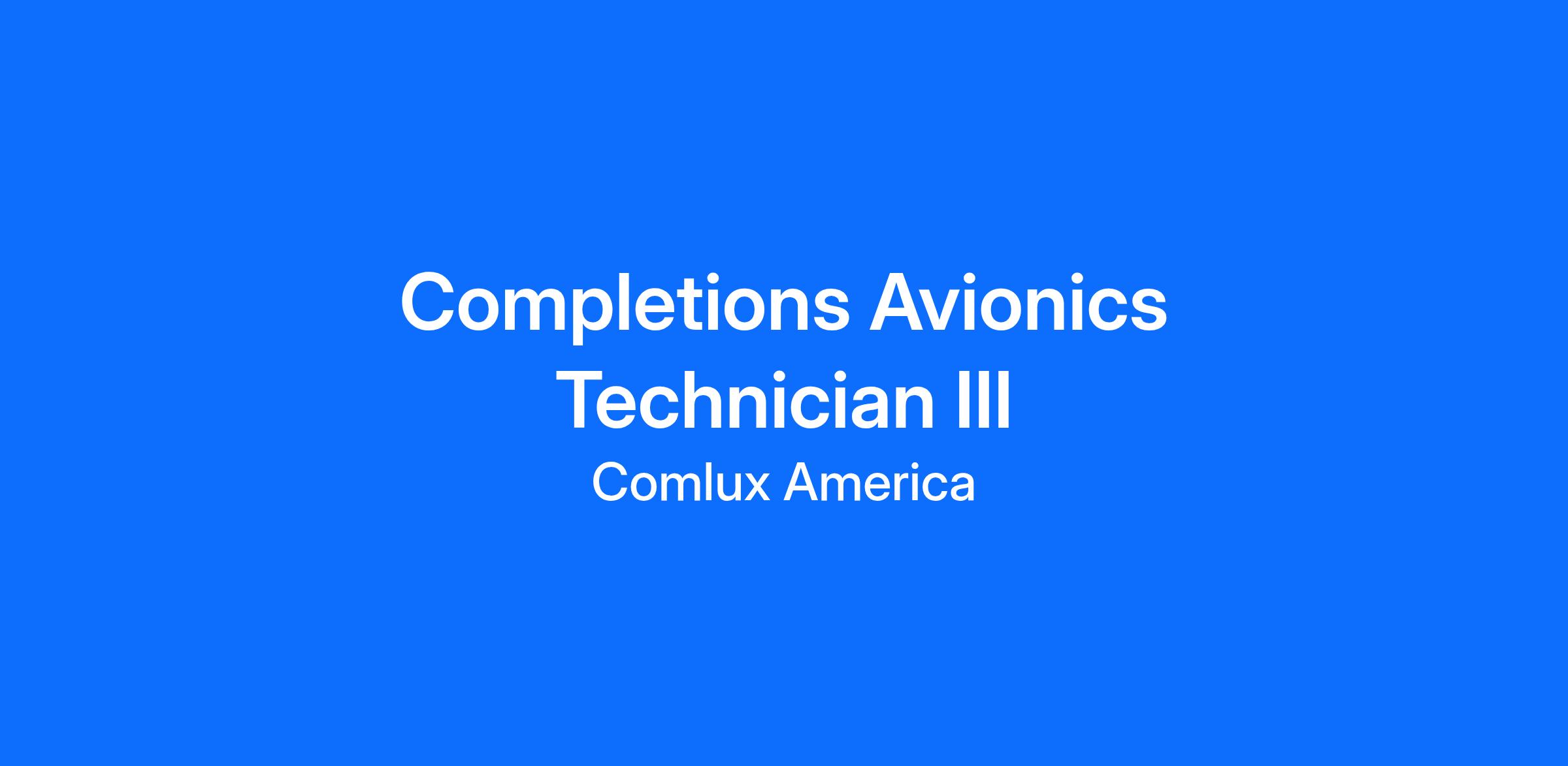 - Prep and pin new systems terminations per manufacturer specifications, Comlux Aviation SOP, RSM, and FARs.