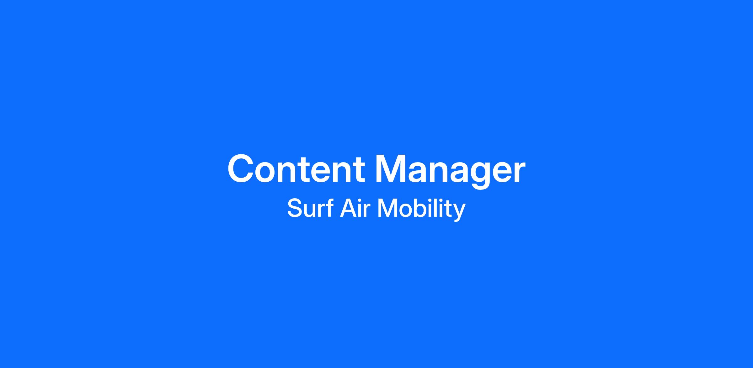 The Content Manager will report to the Chief of Staff and will work alongside the rest of the Marketing, PR, IR, Brand, Sales, and Experience teams. The ideal candidate thinks strategically about campaigns, understands how every channel tells Surf Air Mobility’s unique story, and helps set the direction and tone of brand messaging and positioning.