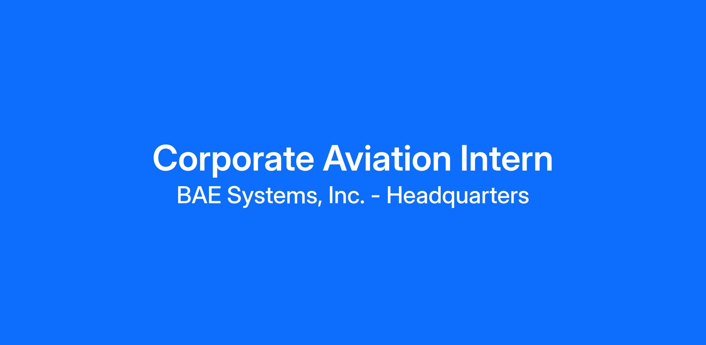 Get ready for some real-world experience! BAE Systems is offering a temporary position as a short-term intern for our FAR Part 91 corporate aviation department located at Washington-Dulles International Airport (KIAD – Dulles, Virginia). Our department consists of a team of professionals committed to providing the highest level of service and safety while operating BAE corporate aircraft in domestic and international operations.
