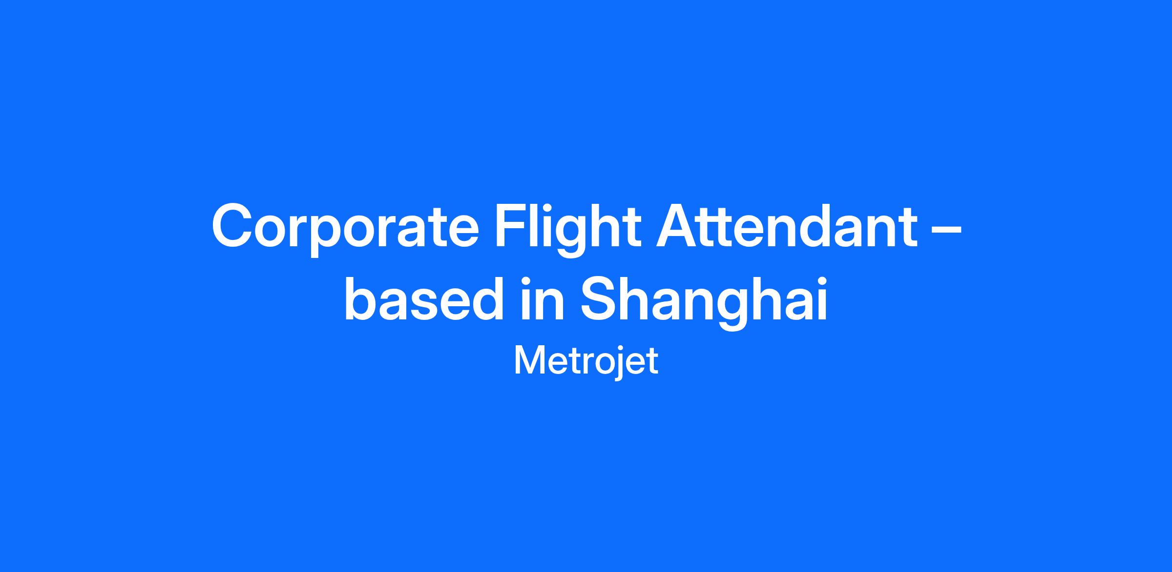 Corporate Flight Attendant – based in Shanghai