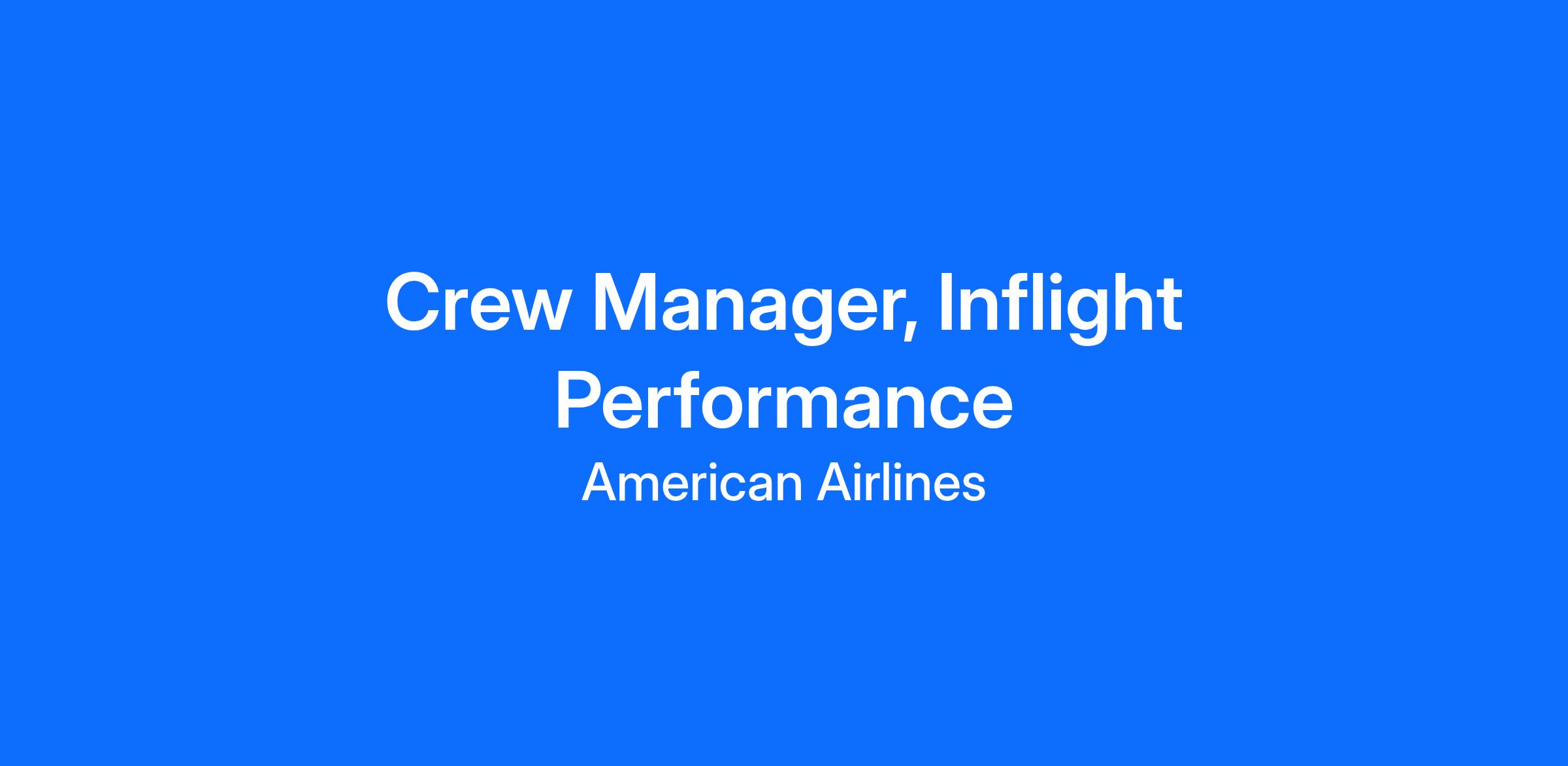 Crew Manager, Inflight Performance