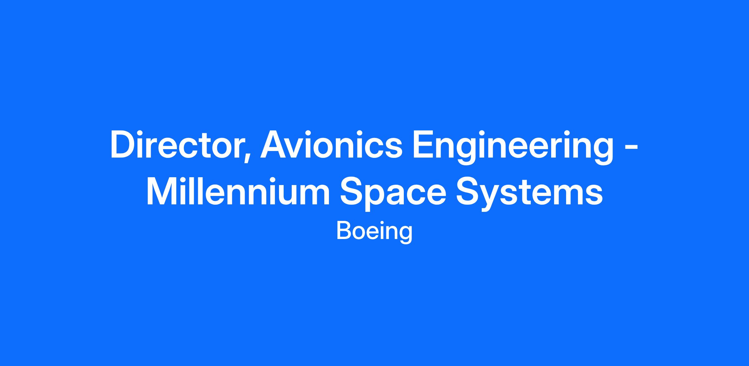 The Boeing CompanyMillennium Space Systems, A Boeing Company, delivers affordable, high-performance space systems for exacting customers. At Millennium, you will be part of a close-knit team working on exciting technological problems. We work in an open environment where ideas are shared across all disciplines, and there are ample opportunities for advancement based on excellence. Superstars are welcome.