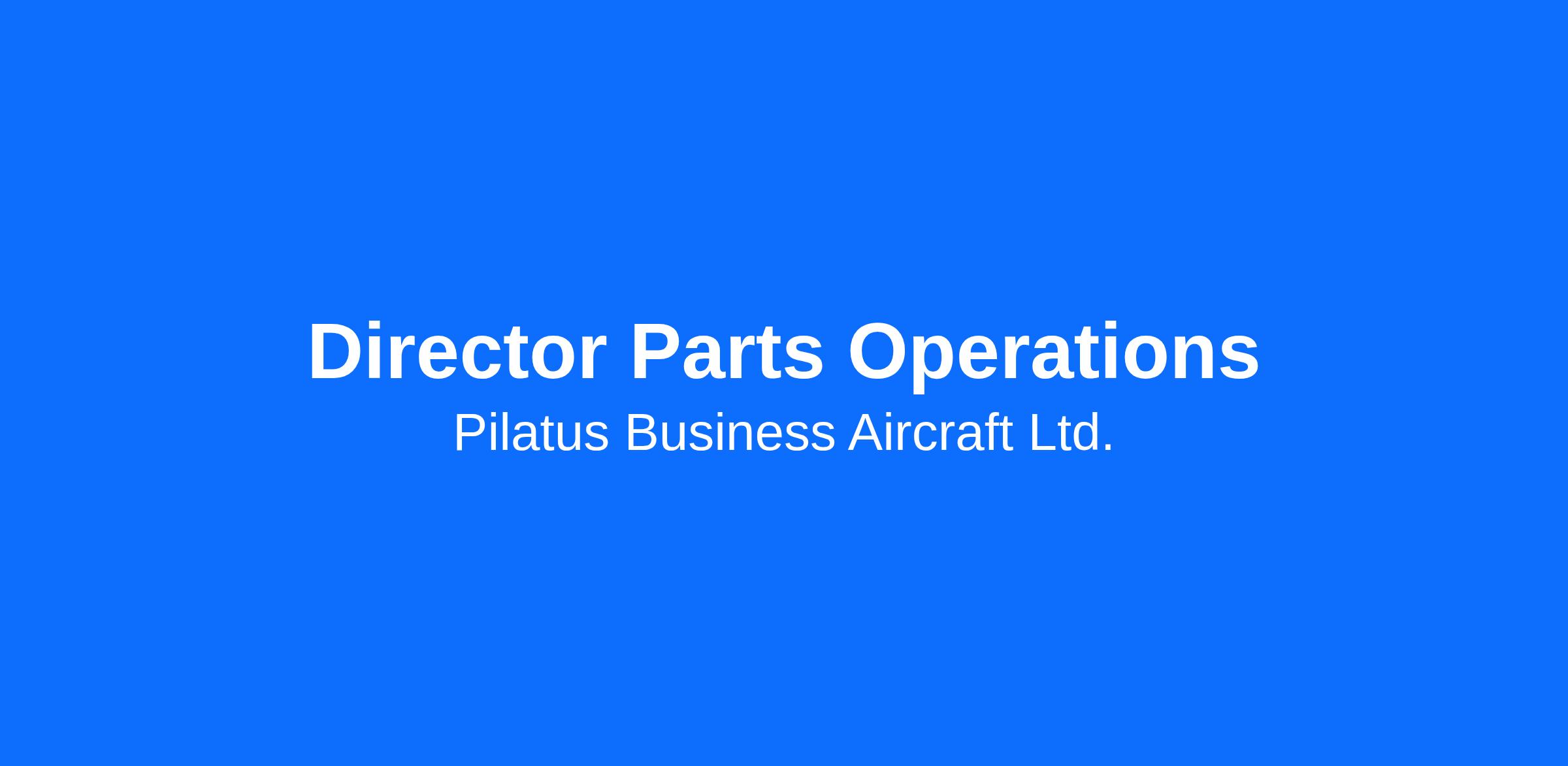 Pilatus is hiring a Director Parts Operations to join our team in Broomfield, CO. In this role, you will be responsible for managing the Parts Sales department to provide spare parts support services to all Pilatus Service Centers, aircraft owners, and operators in the Americas. In addition, you will oversee all aspects of Parts Sales business, including but not limited to, parts availability, provisioning, repairs, and pricing. Take your career to the next level with Pilatus Business Aircraft Ltd!