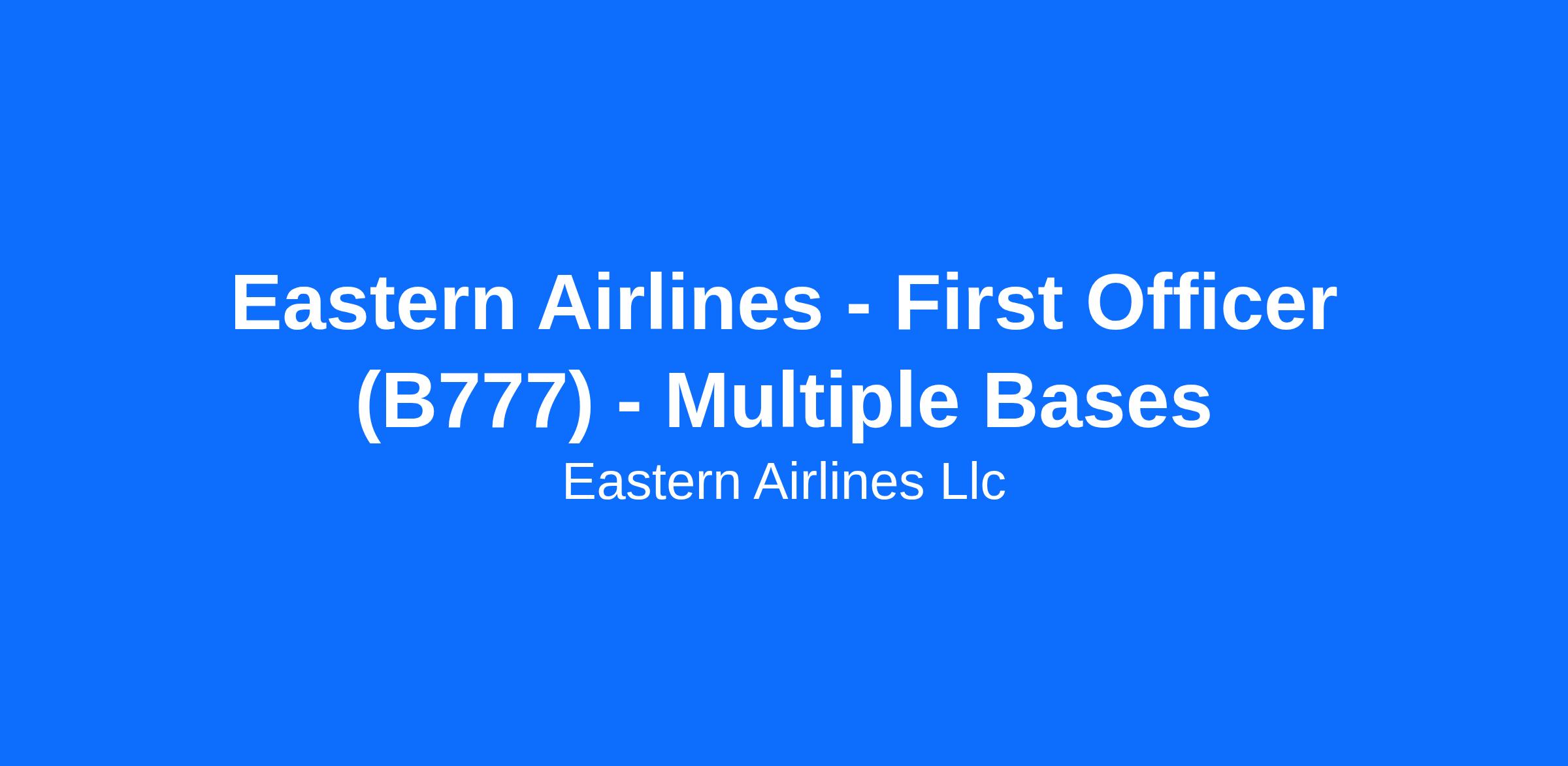Eastern Airlines is an Equal Opportunity Employer.