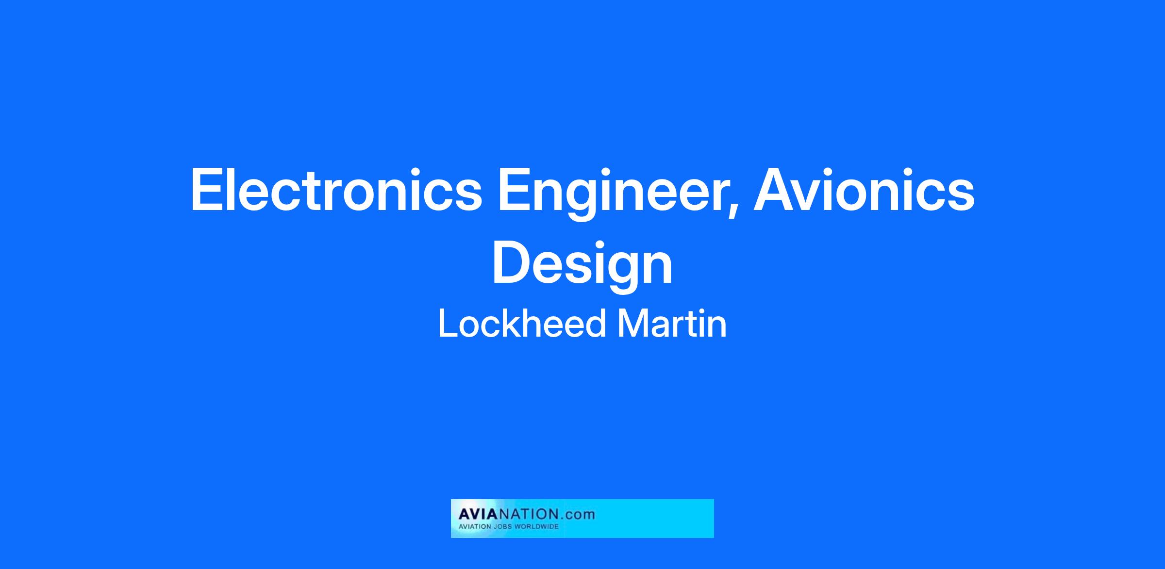 We are hiring levels 2-5. If you are interested in joining the Lockheed Martin team and working as an Electronics Engineer, please apply to this requisition.
