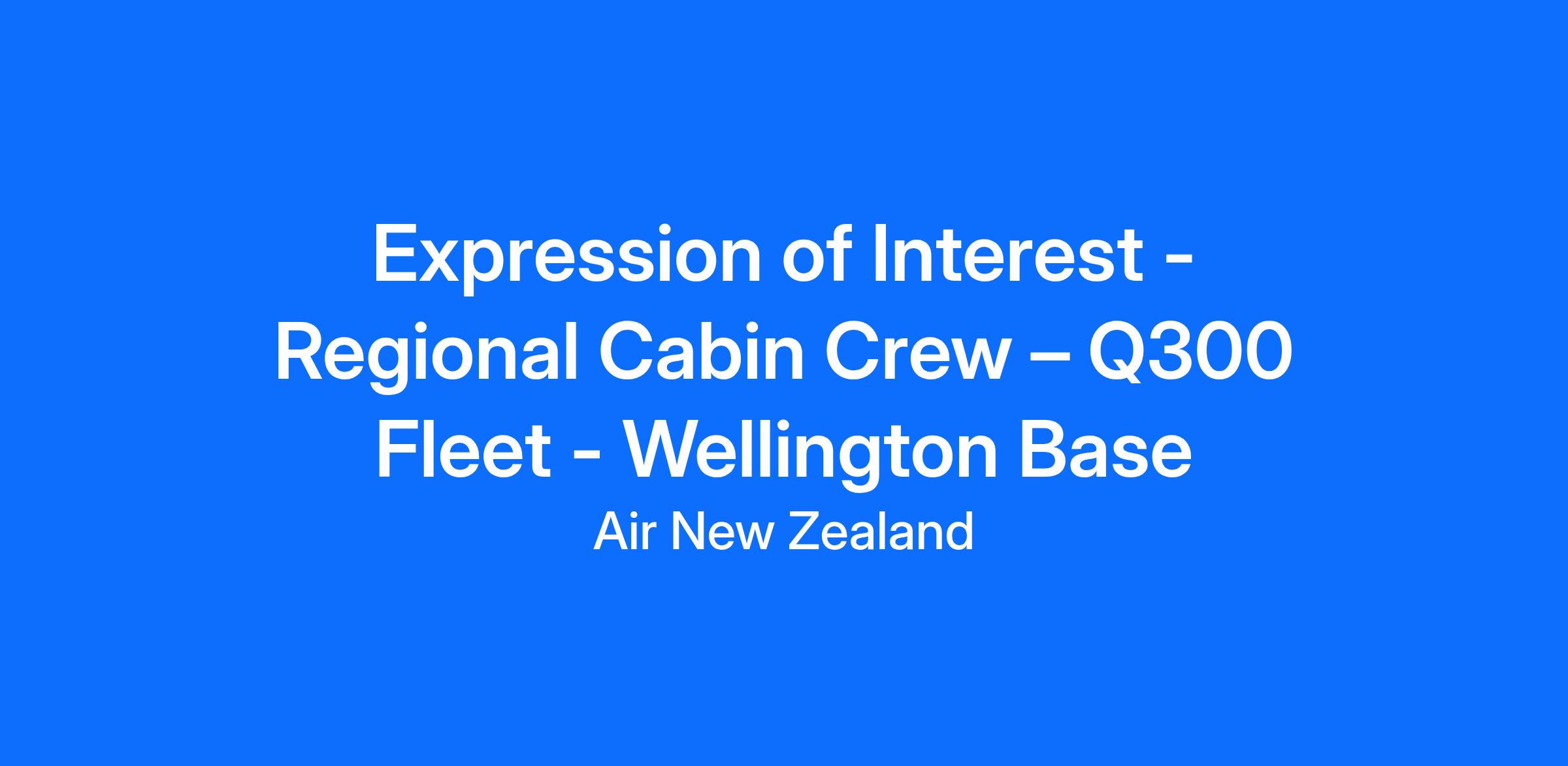 We are seeking applications for Regional Cabin Crew in our Q300 based in Wellington for starting in the second half of this year in 2026.