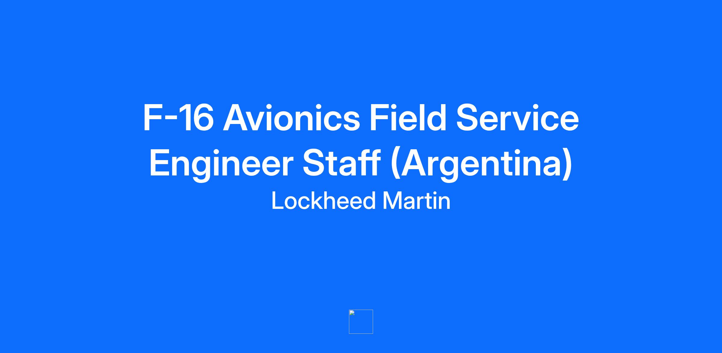 Join the Lockheed Martin Aeronautics Field Sustainment (AFS) team as an F-16 Field Service Engineer (FSE) to support the Argentina Air Force (FAA) at Rio Cuarto Air Base, Cordoba Province, Argentina. Note: This position is located in Argentina and is an accompanied assignment - employee +1. This position will provide on-site advice, liaison, and informal training in the installation, operation and maintenance of equipment and systems related to F-16 on and off the aircraft.