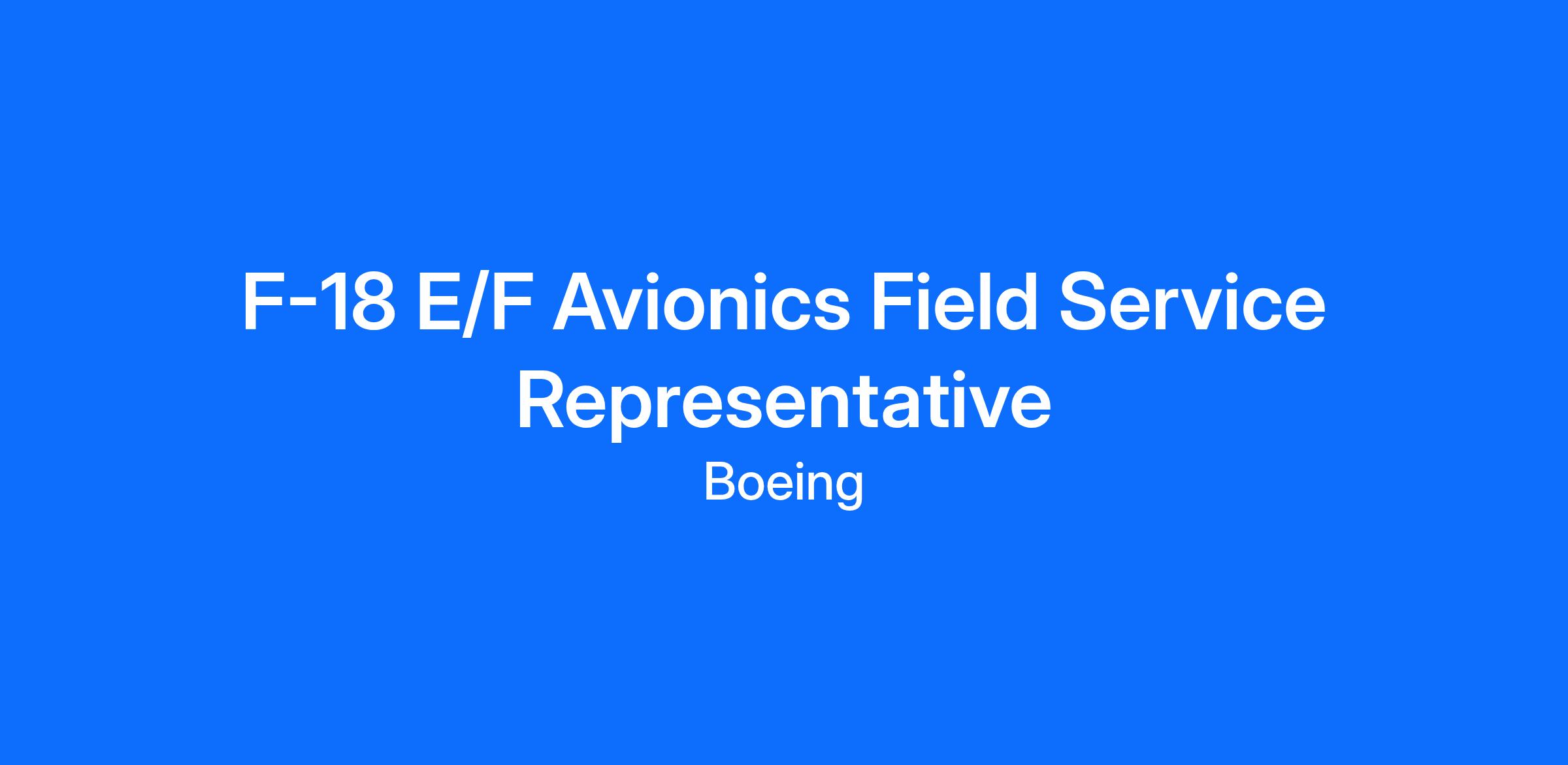 Boeing Aerospace OperationsBoeing Global Services (BGS) is seeking an Experienced Field Service Representative to support the F/A-18 E/F Aircraft at Lemoore, California.
