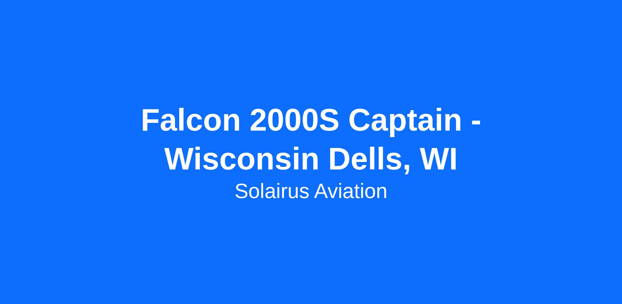 Solairus Aviation is currently searching for a Full-Time Falcon 2000S Captain to join an operation at the KDLL airport. The ideal candidate will need to be a standout colleague while seeking excellence in every aspect of his/her performance. Join a hardworking team who strives to safely and expertly meet the travel needs of our clients while adhering to Solairus’ unique culture of safety, service, and integrity.