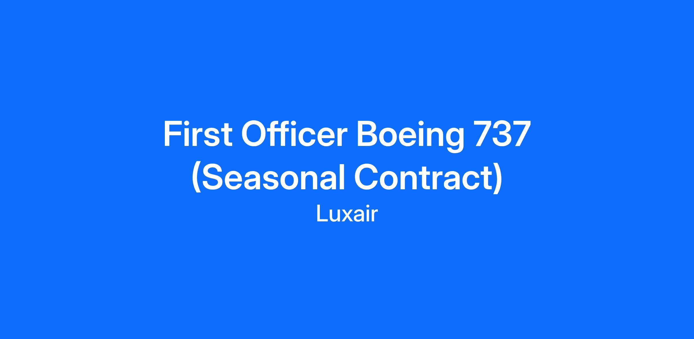 First Officer Boeing 737 (Seasonal Contract)