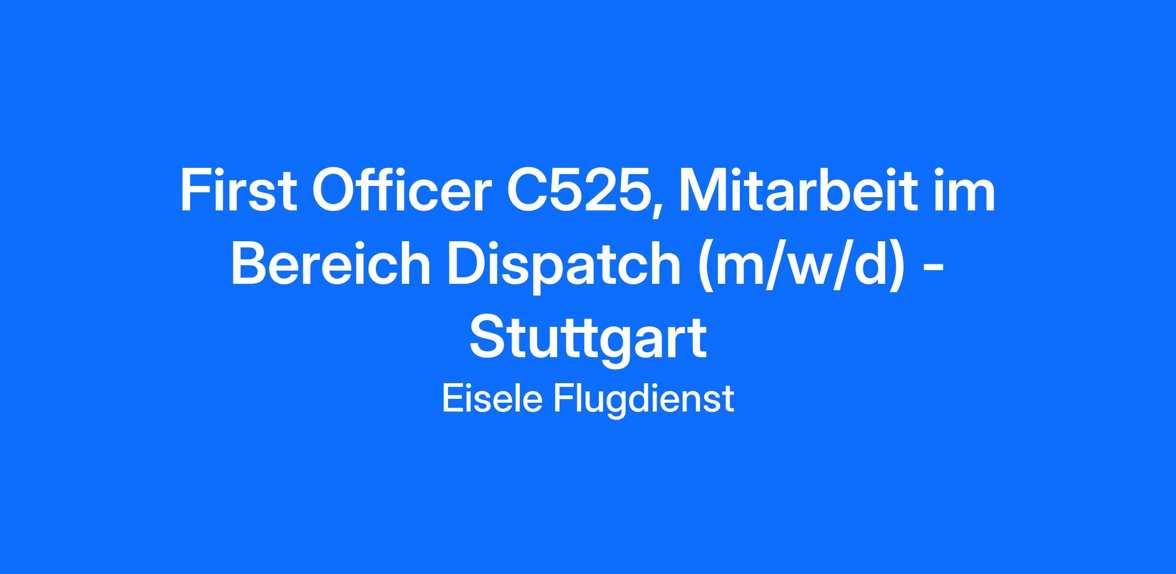 First Officer C525, Mitarbeit im Bereich Dispatch (m/w/d) - Stuttgart