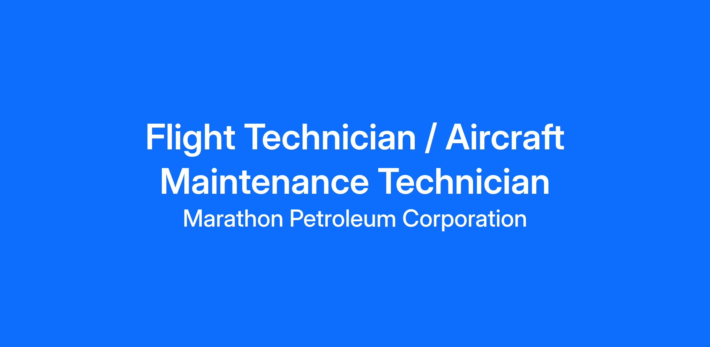 Marathon Petroleum Company is looking for a Flight Technician / Aircraft Maintenance Technician to travel on company aircraft as needed, and to perform scheduled, unscheduled and line maintenance on company aircraft, and keep Marathon aircraft operating at the highest aviation standards.